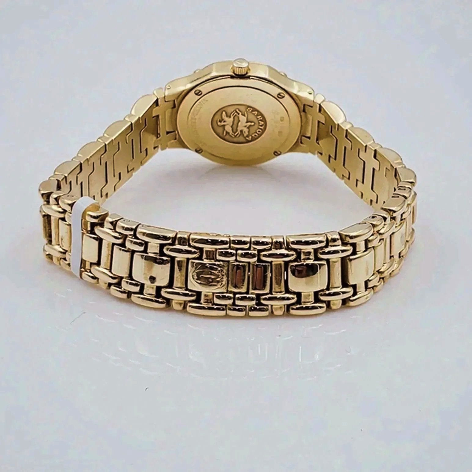 Ladies Concord Sarento 24mm Solid 18K Yellow Gold Band Watch with Roman Numeral Gold Dial and Diamond Bezel. (Pre-Owned)