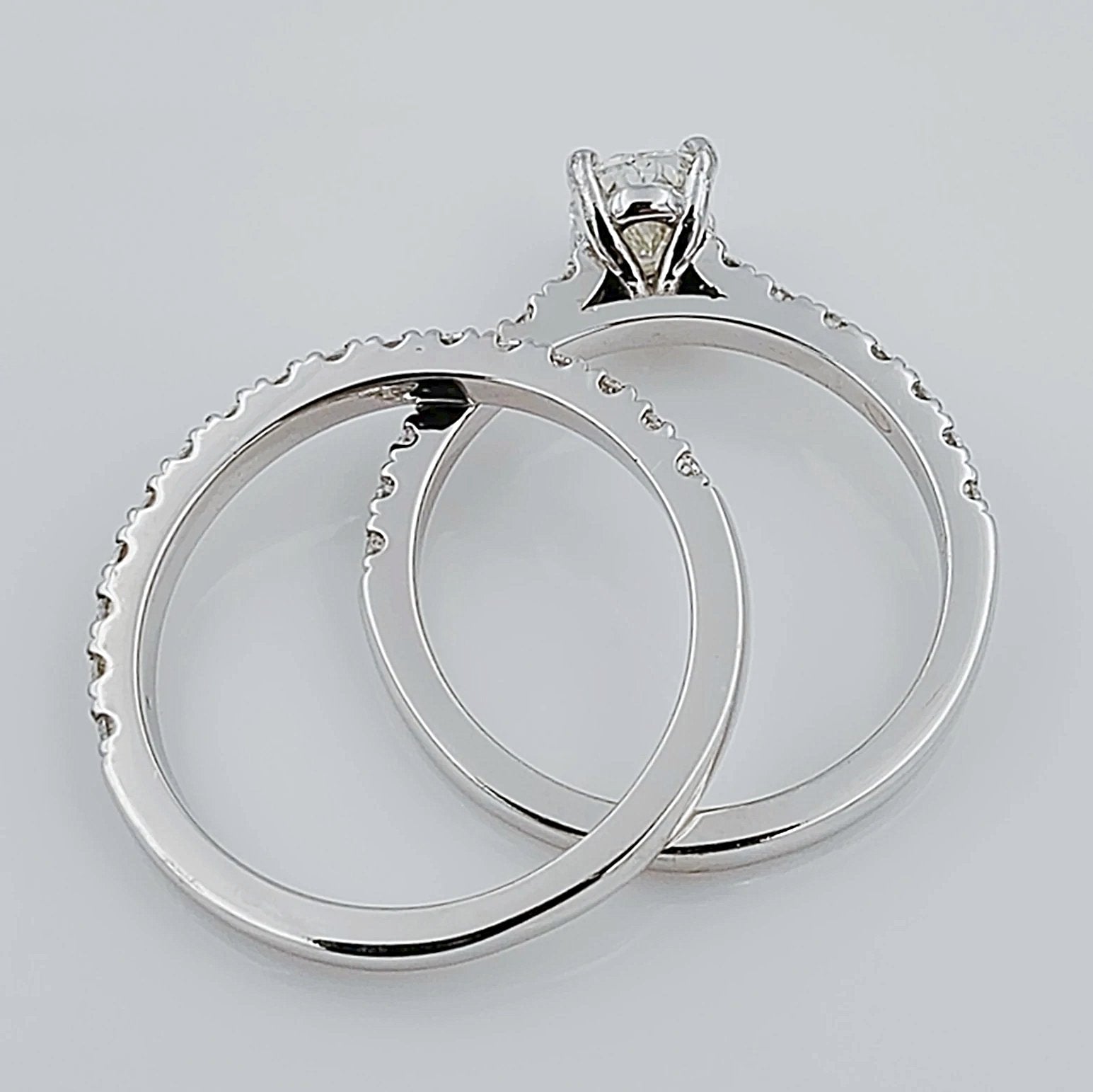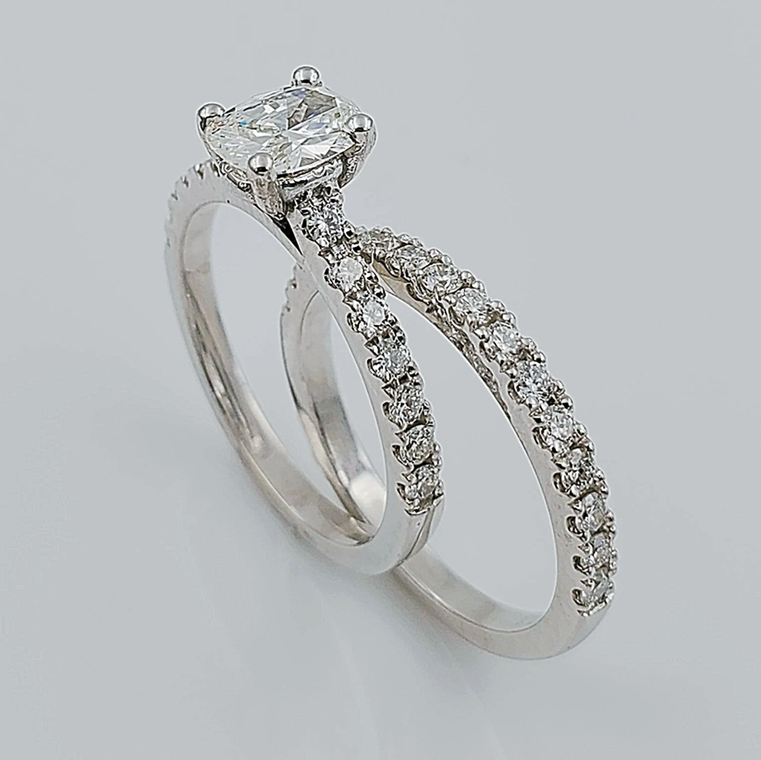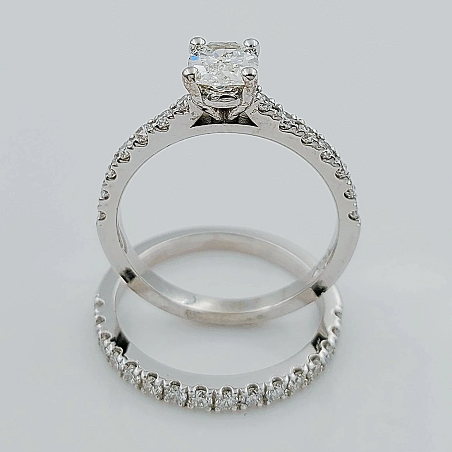 Women's 14K White Gold with Oval 0.64 CT Center (SI Color I) Diamond 4.9 GR Total Weight Bridal Ring Set. (Size: 6.0)