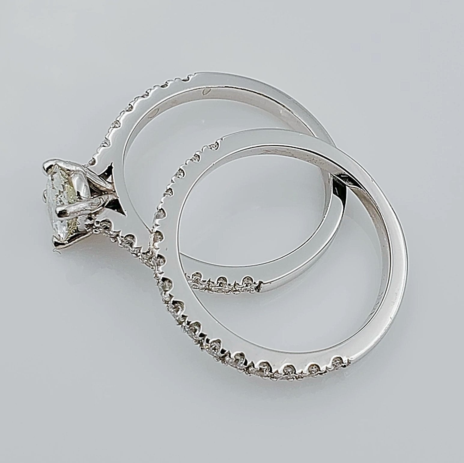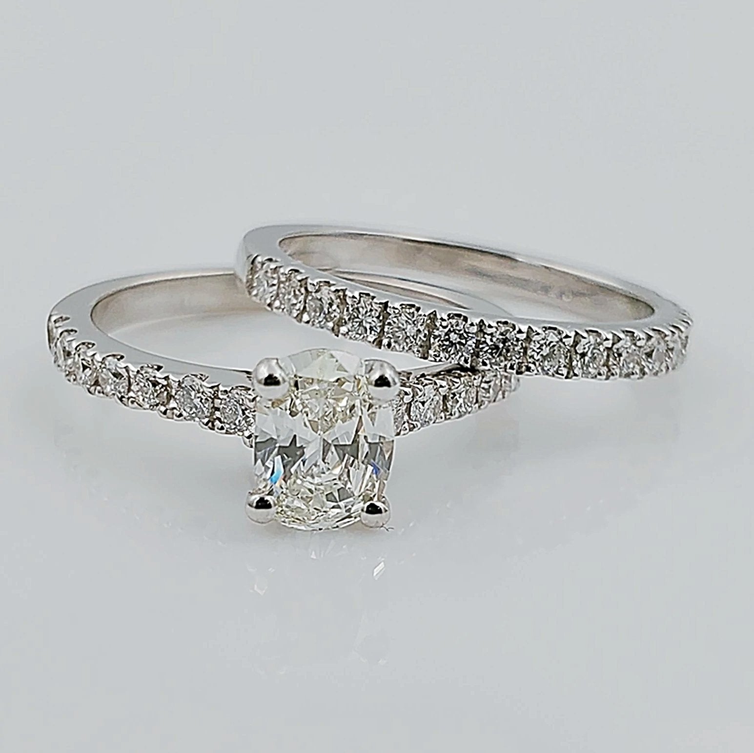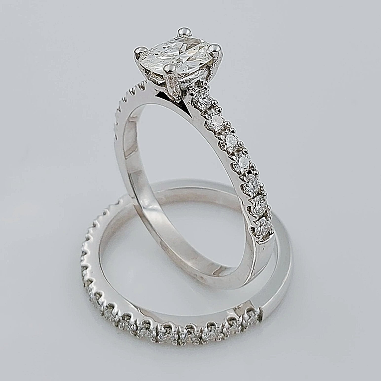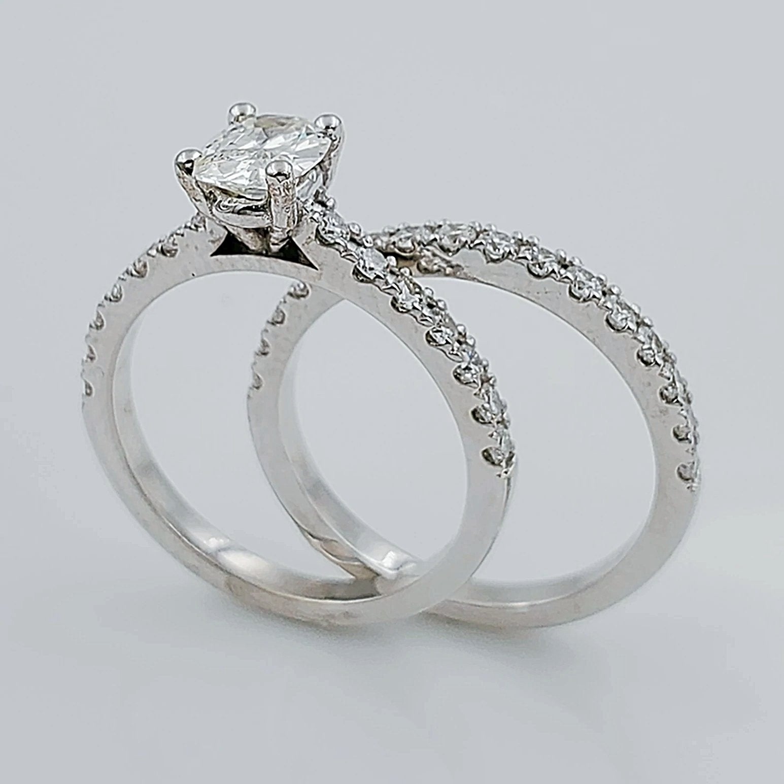 Women's 14K White Gold with Oval 0.64 CT Center (SI Color I) Diamond 4.9 GR Total Weight Bridal Ring Set. (Size: 6.0)