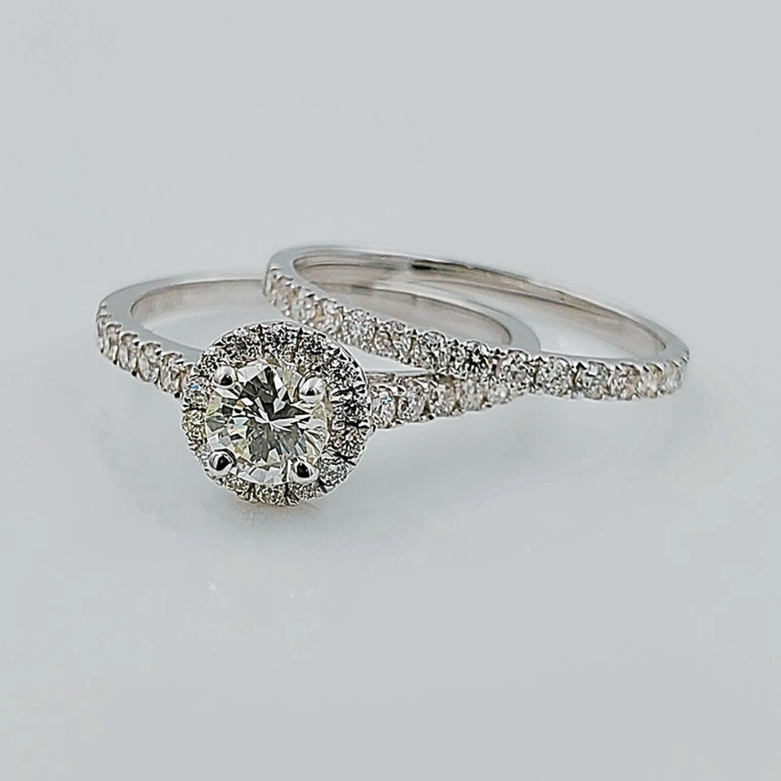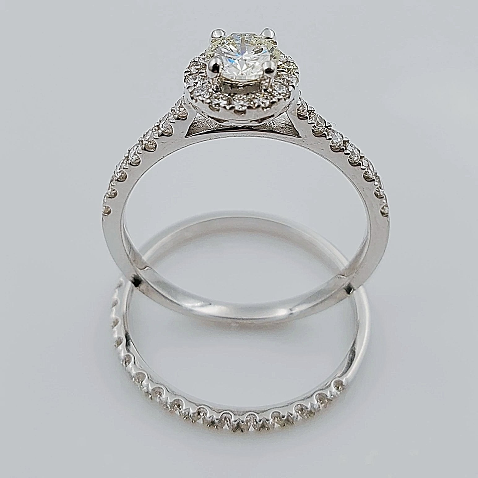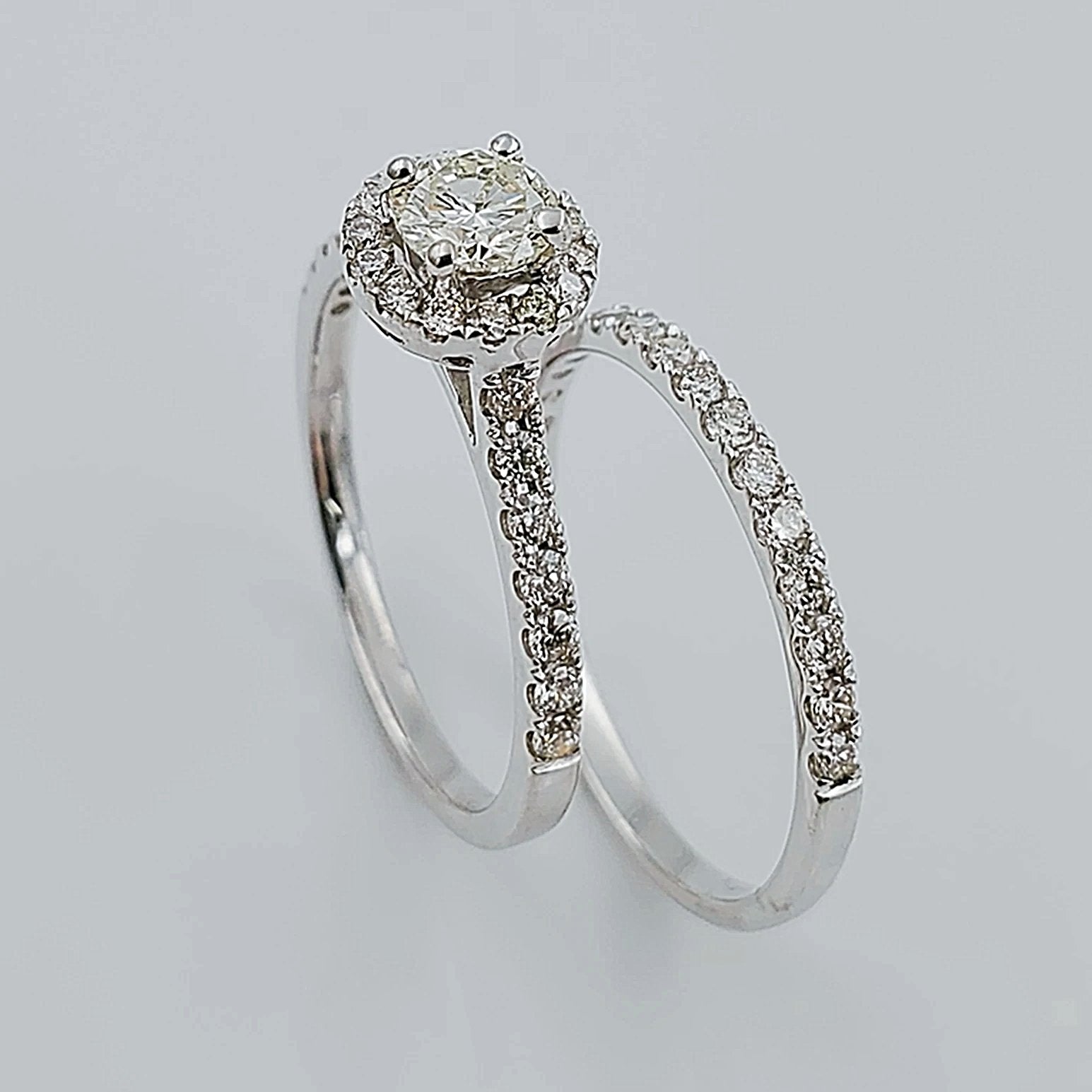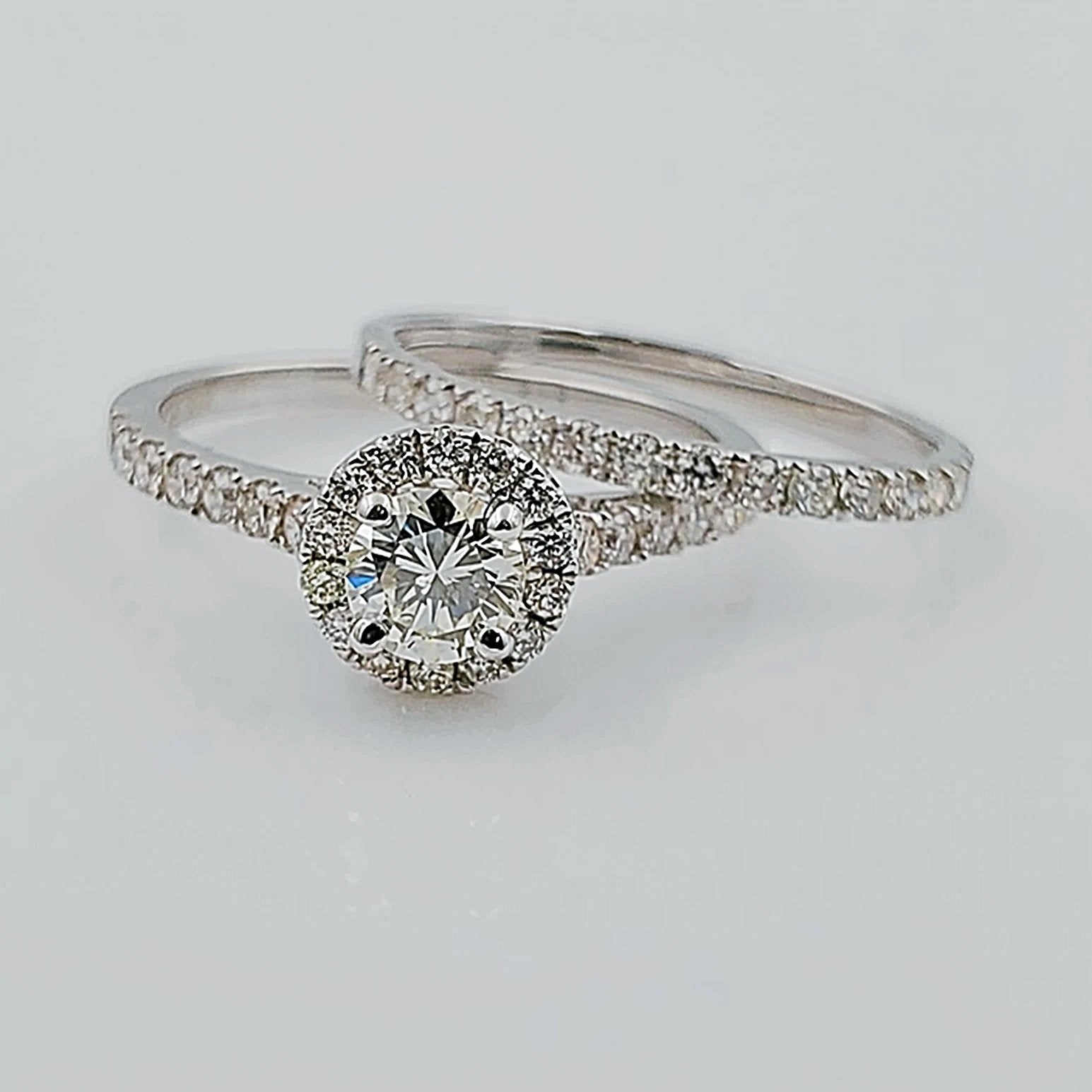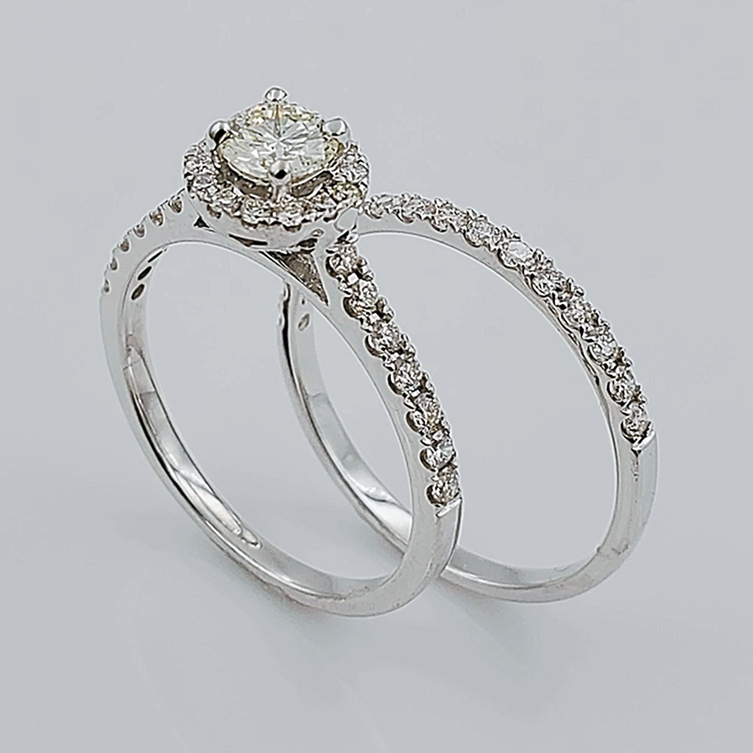 Women's 14K White Gold with Round 0.40 CT Center (SI1 Color J) Diamond 3.5 GR Total Weight Bridal Ring Set. (Size: 6.5)