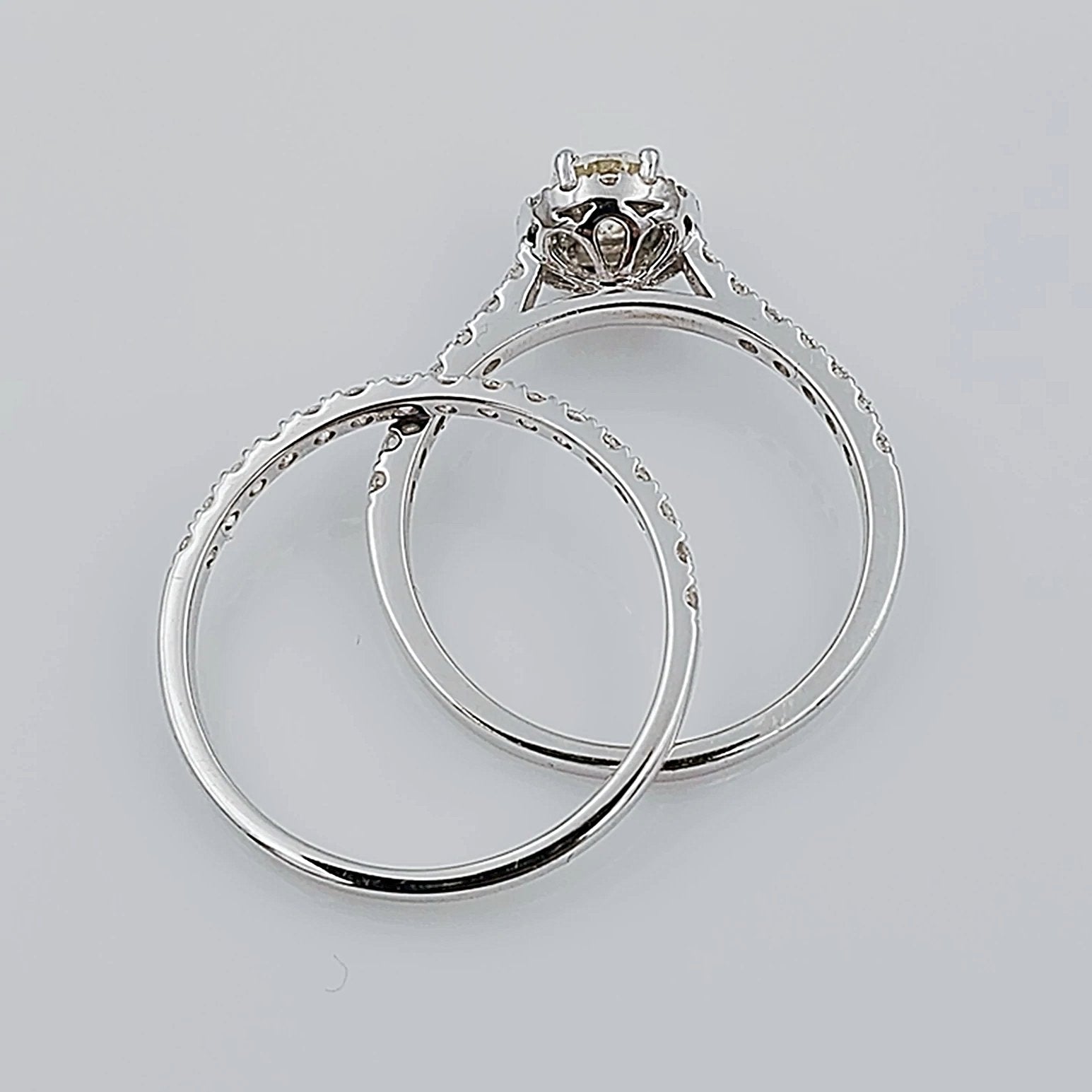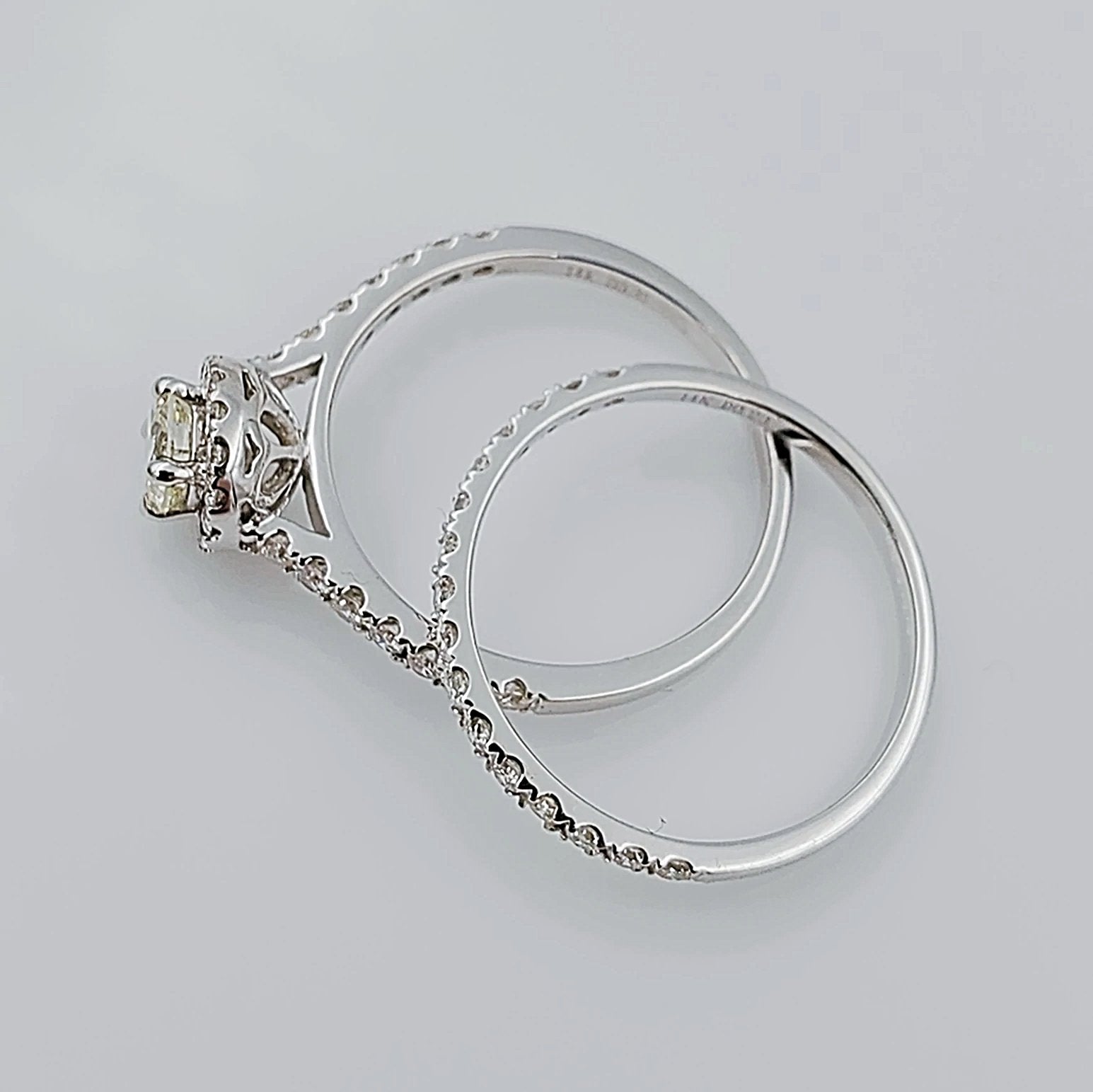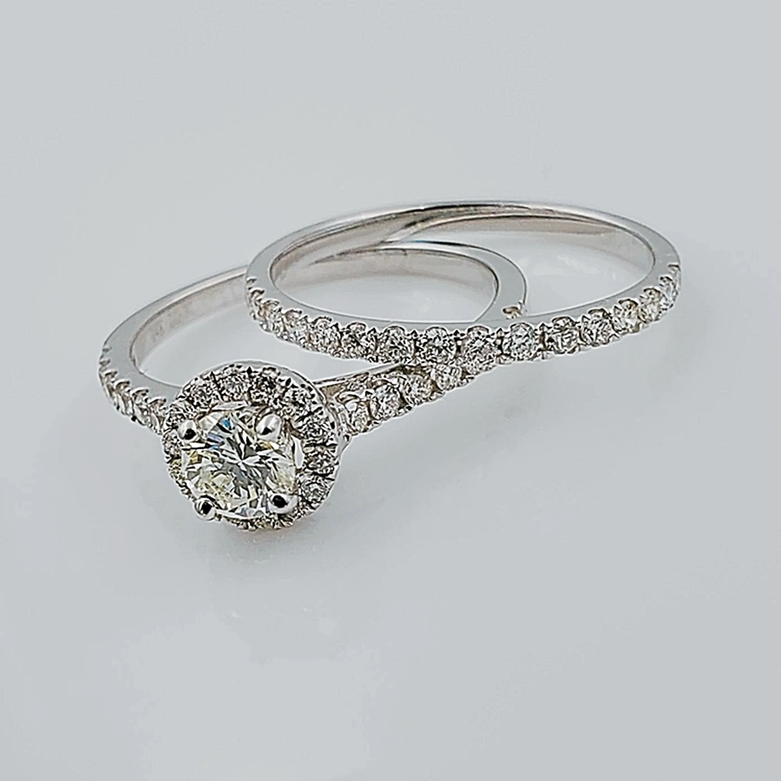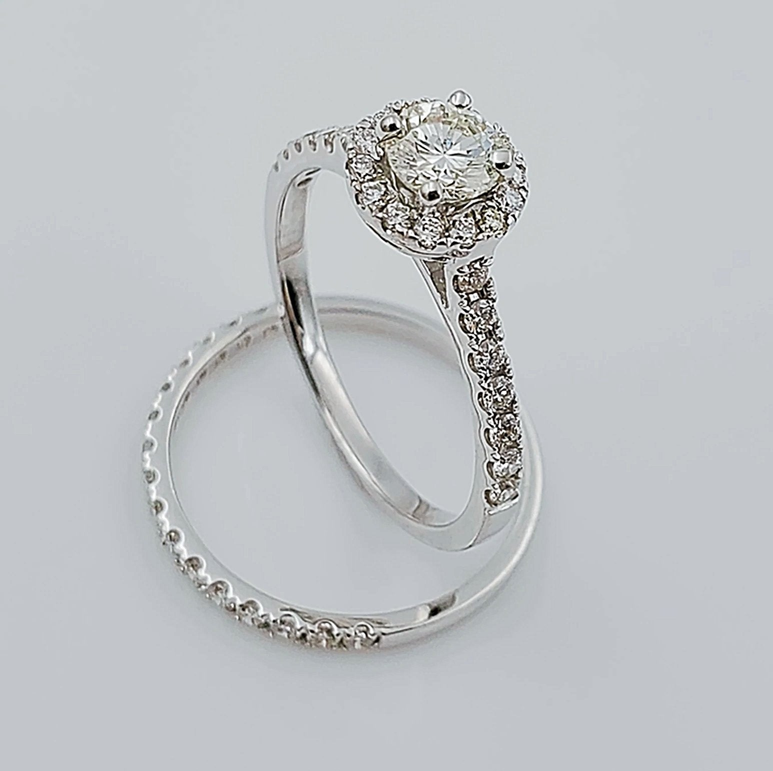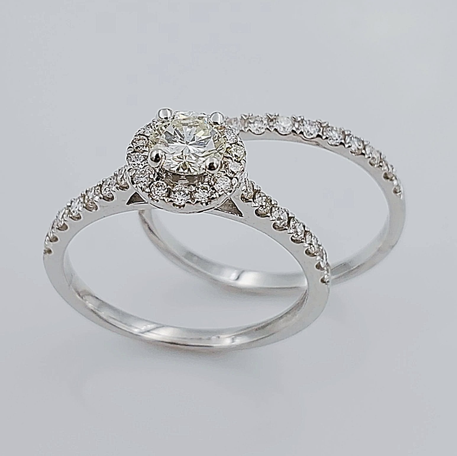 Women's 14K White Gold with Round 0.40 CT Center (SI1 Color J) Diamond 3.5 GR Total Weight Bridal Ring Set. (Size: 6.5)