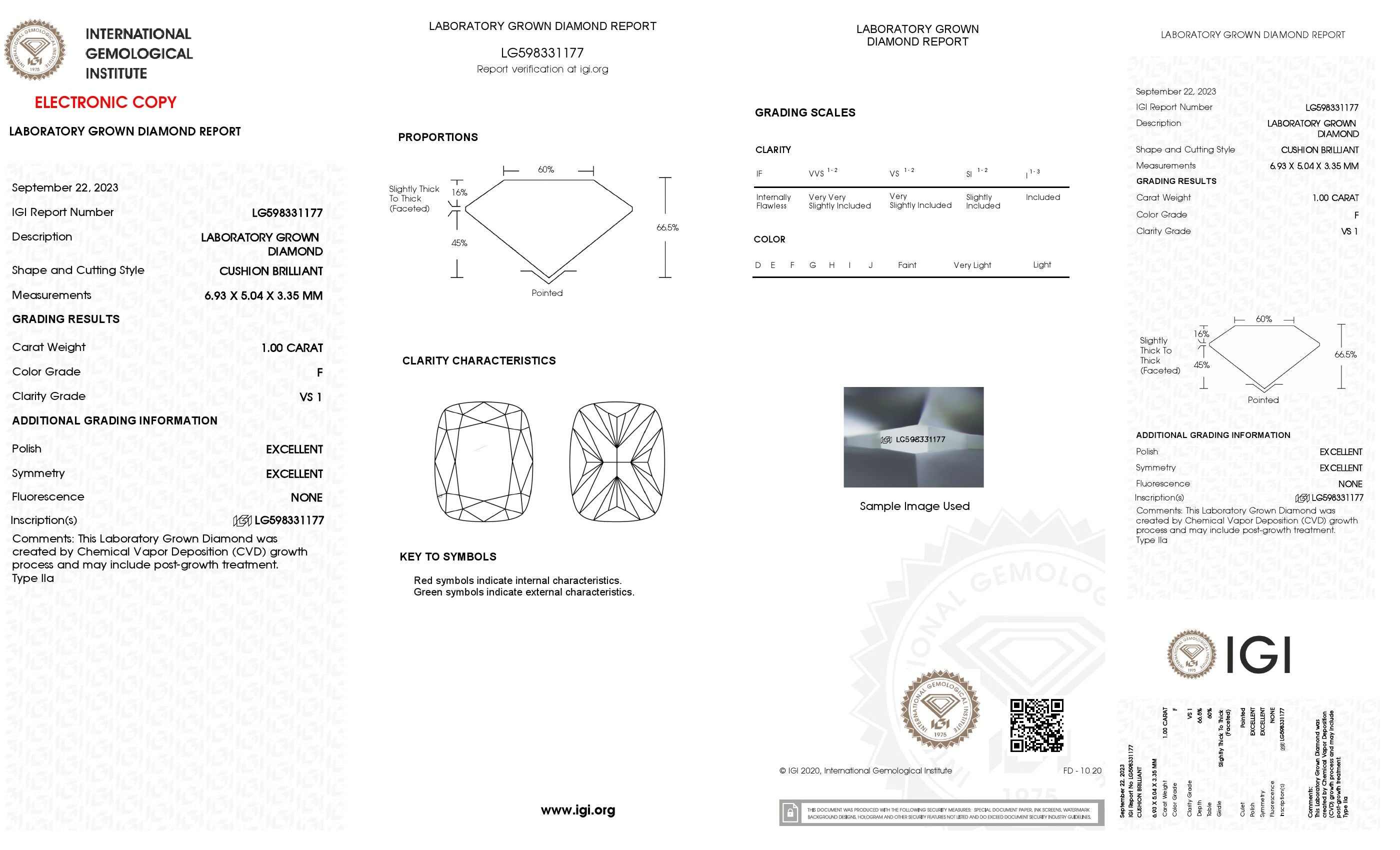1 Ct. Cushion long Wholesale IGI Certified Lab Grown Loose Diamond. (Clarity VS1 / F Color)
