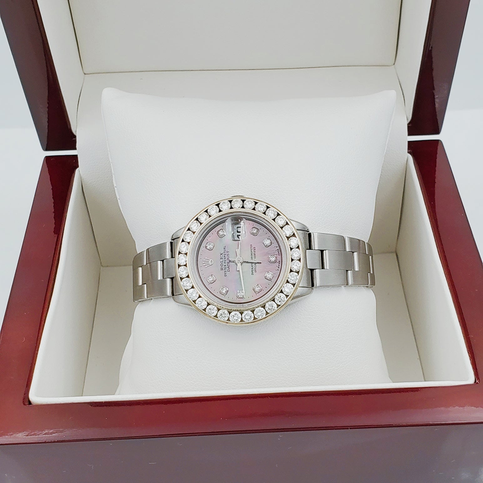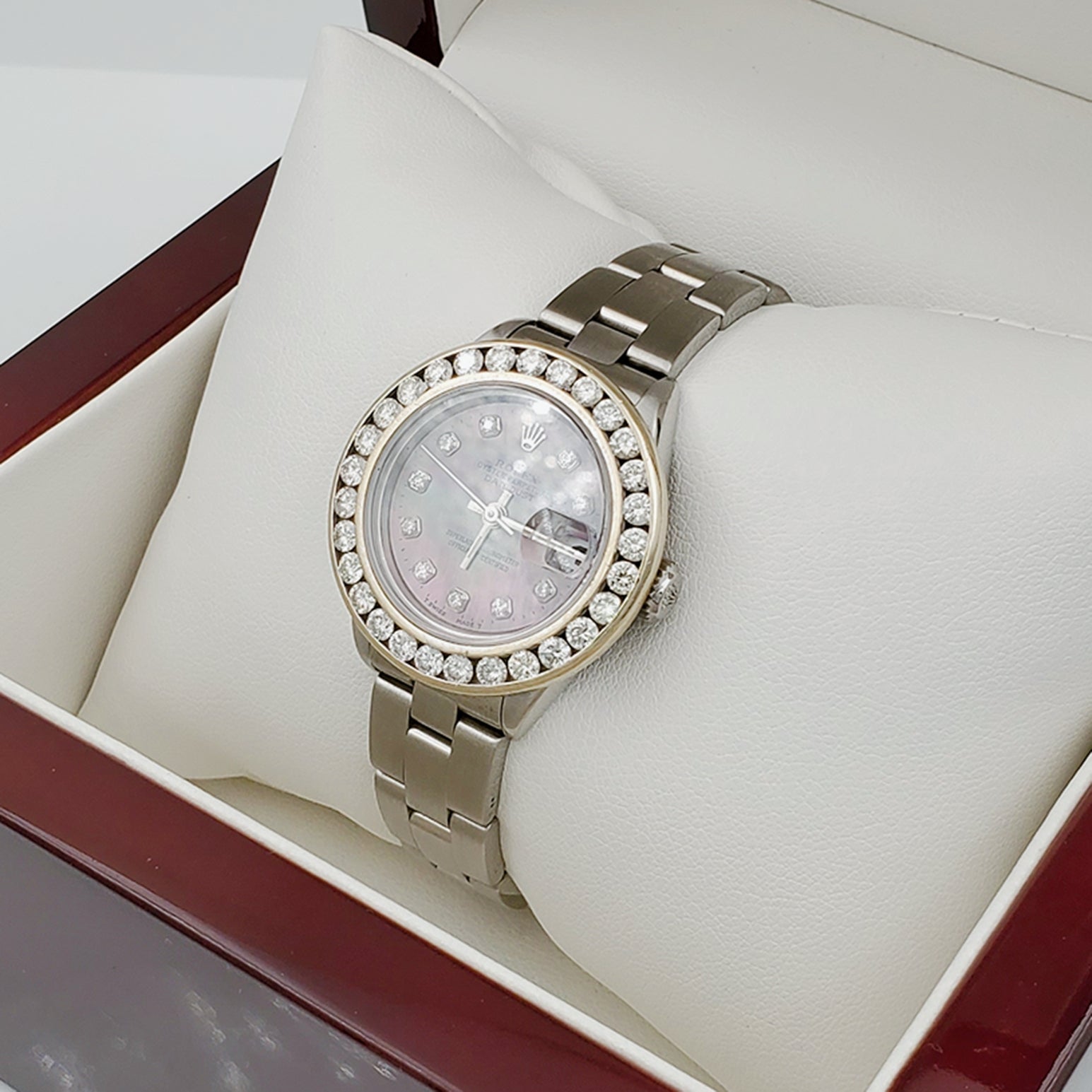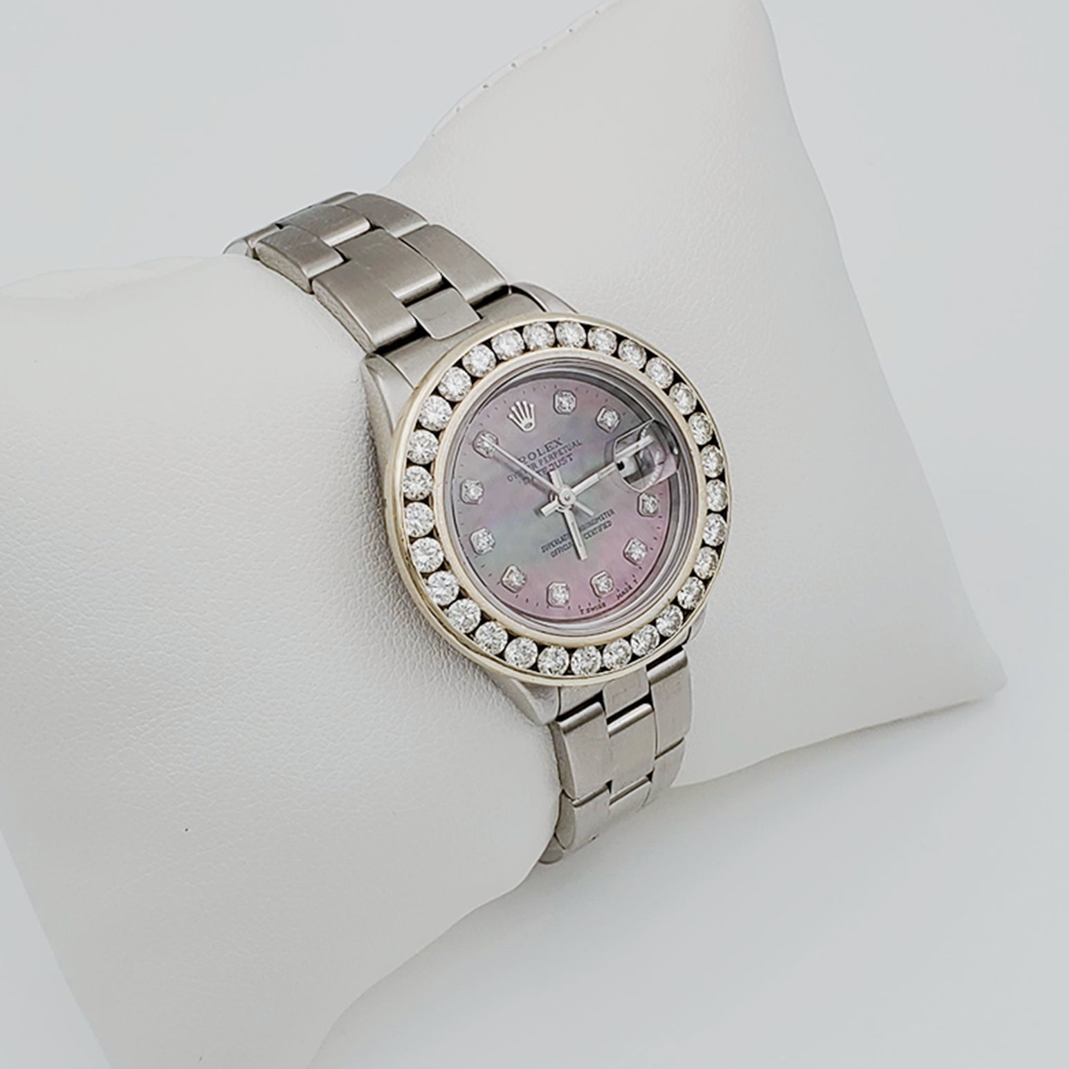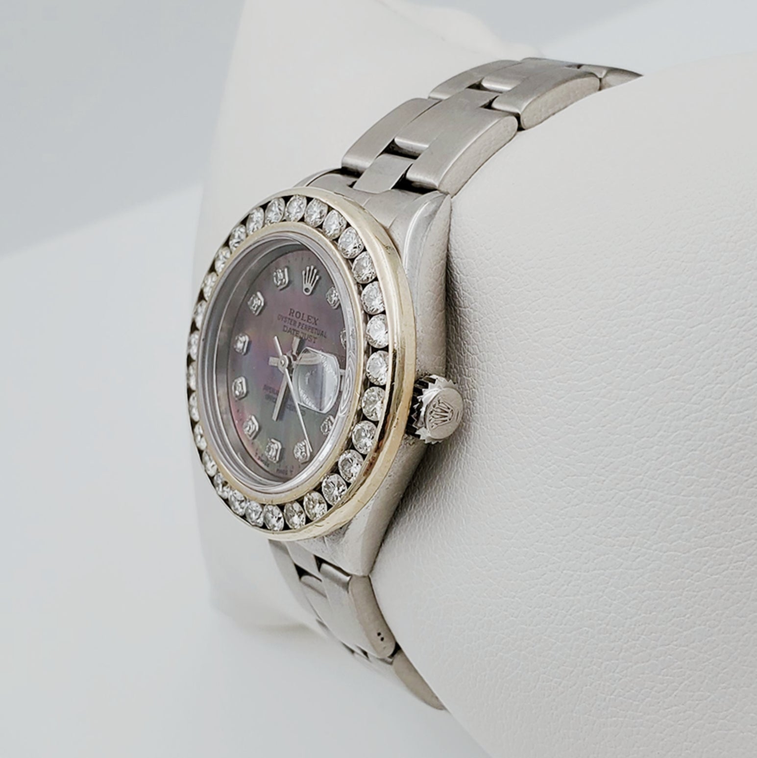 • NOTE: This beautiful Rolex watch includes an aftermarket custom diamond bezel.