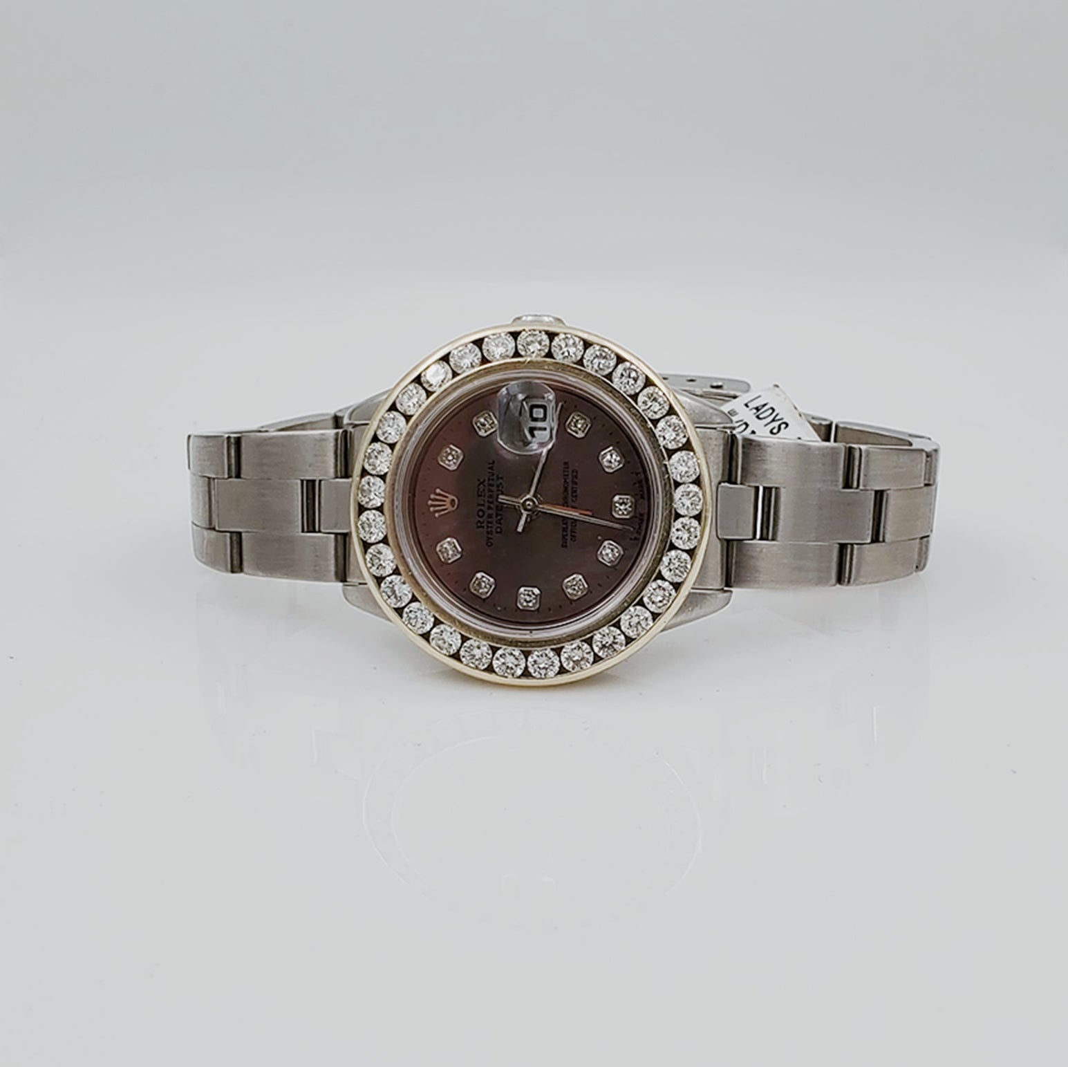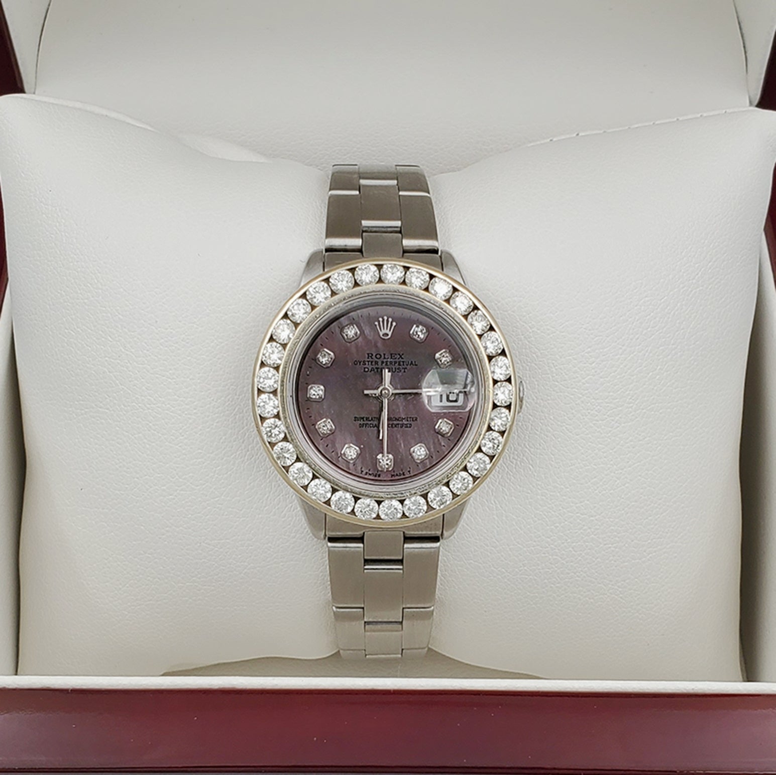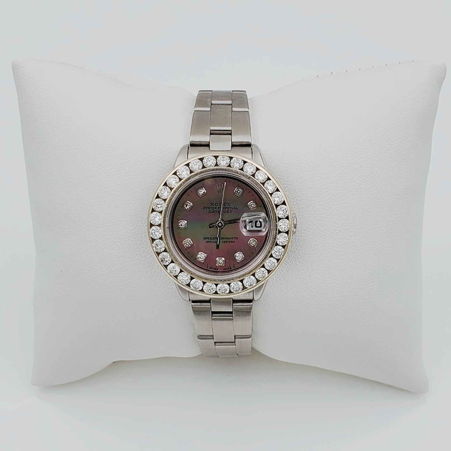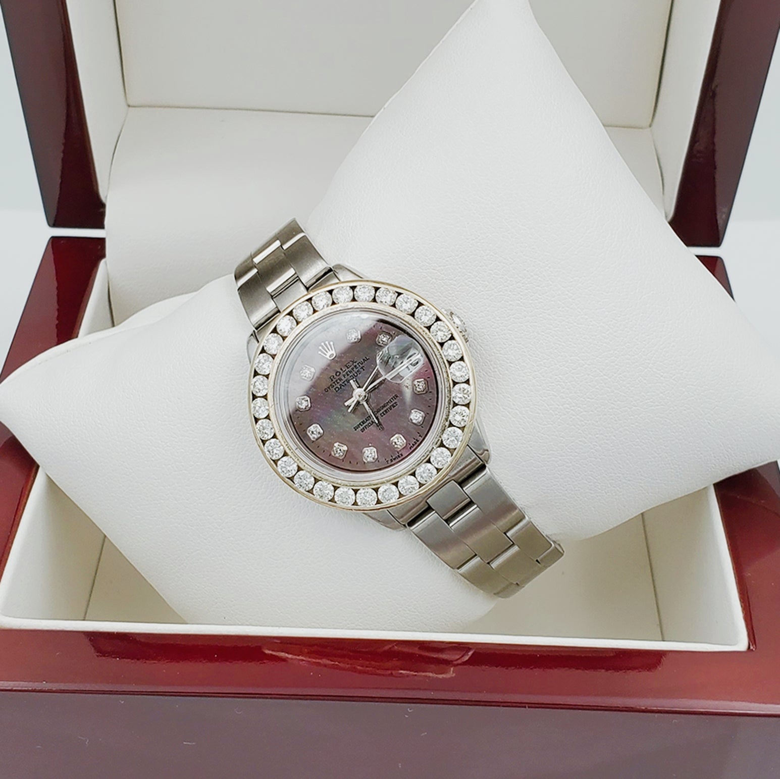 • NOTE: This beautiful Rolex watch includes an aftermarket custom diamond bezel.