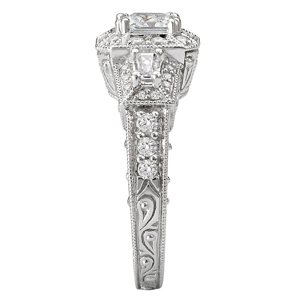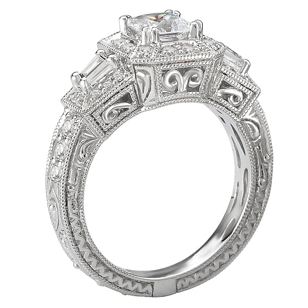 Round and Baguette Diamond Ring in 14kt White Gold. (D. 1/2 carat total weight) This item is a SEMI-MOUNT and it comes with NO CENTER STONE as shown but it will accommodate a 5-5.5mm princess cut center stone.