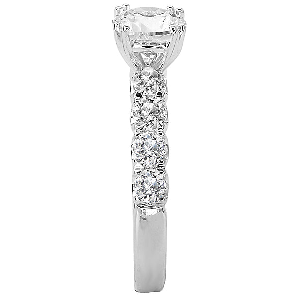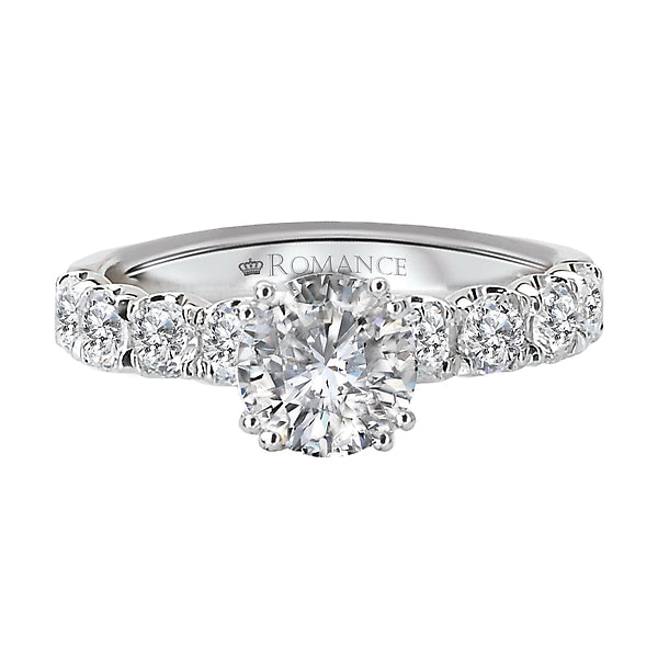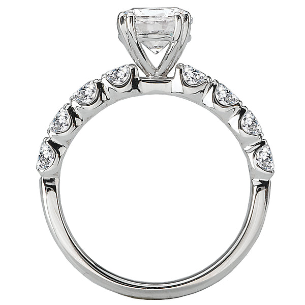 8-Stone Round Diamond Ring in 14kt White Gold. (D. 3/4 carat total weight) This item is a SEMI-MOUNT and it comes with NO CENTER STONE as shown but it will accommodate a 6.5mm round center stone. Peg Head