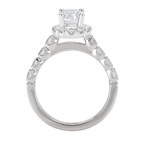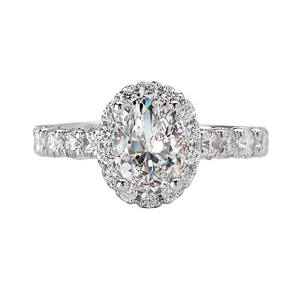 Micro-Set 14kt White Gold Diamond Ring with Oval Style Halo. (D 3/4 carat total weight) This item is a SEMI-MOUNT and it comes with NO CENTER STONE as shown but it will accommodate a 7.5x5.5mm oval center stone.