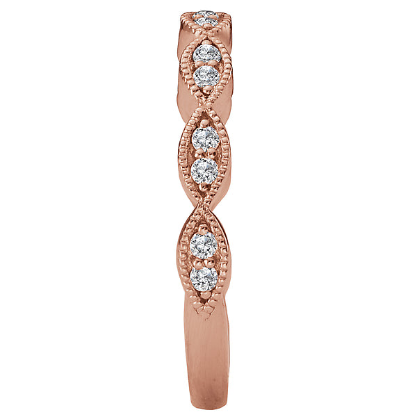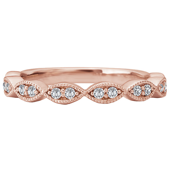 Matching Diamond Wedding Band in 14kt Rose Gold with Milgrain Detail. (D 1/5 carat total weight)