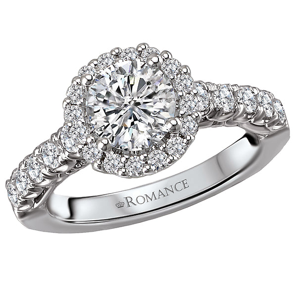 14K White Gold Halo Semi-Mount Romance Collection Wedding Ring.