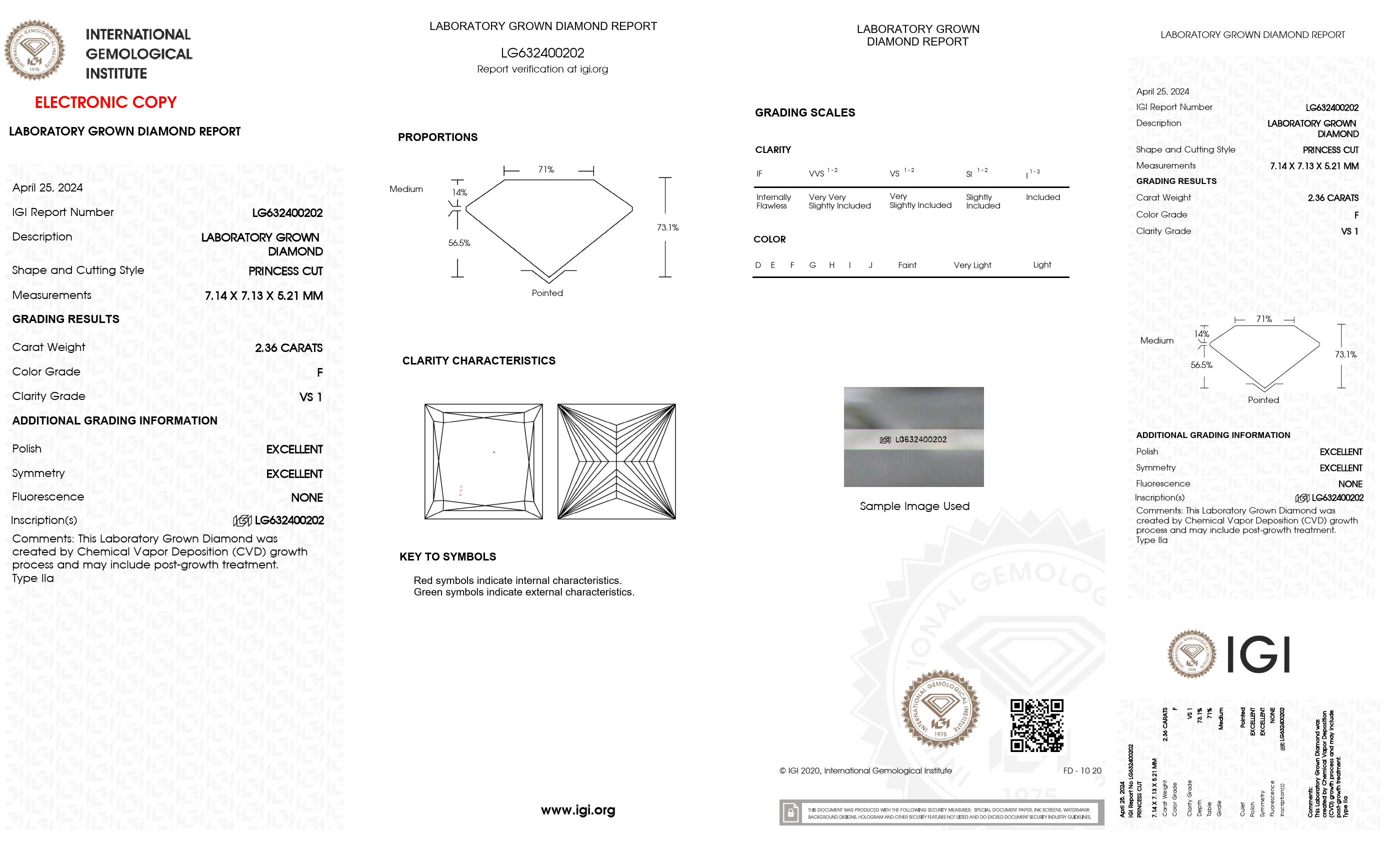 2.36 Ct. Princess Wholesale IGI Certified Lab Grown Loose Diamond. (Clarity VS1 / F Color)