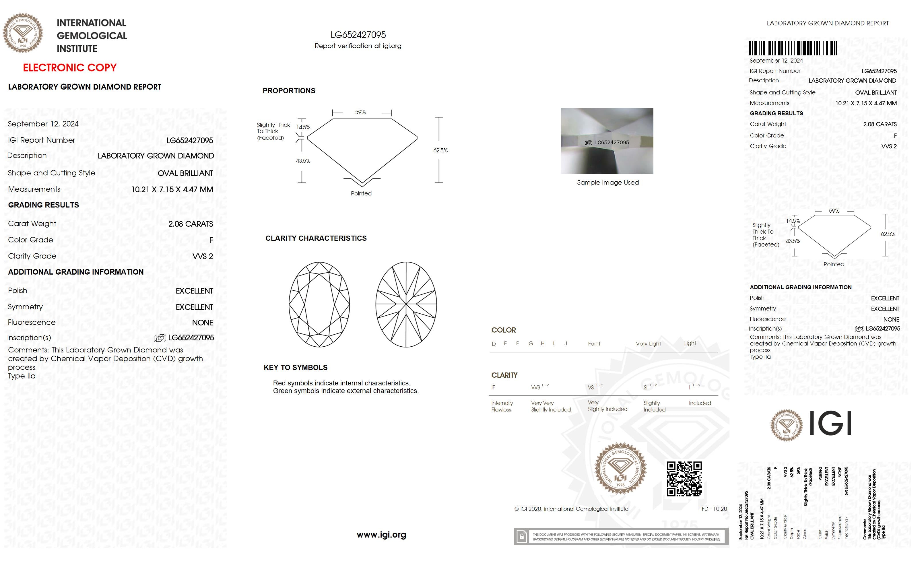 2.08 Ct. Oval Wholesale IGI Certified Lab Grown Loose Diamond. (Clarity VVS2 / F Color)