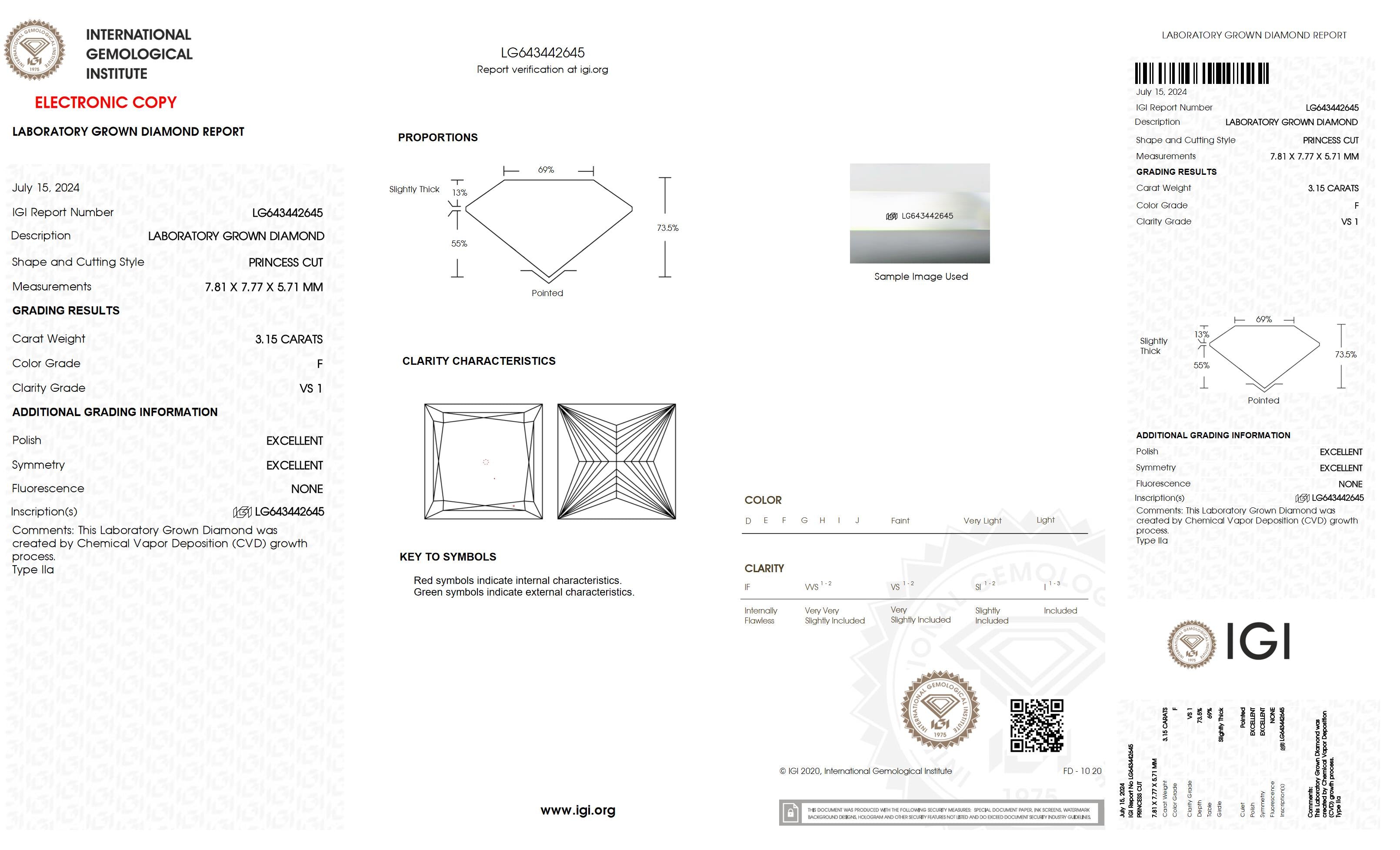 3.15 Ct. Princess Wholesale IGI Certified Lab Grown Loose Diamond. (Clarity VS1 / F Color)