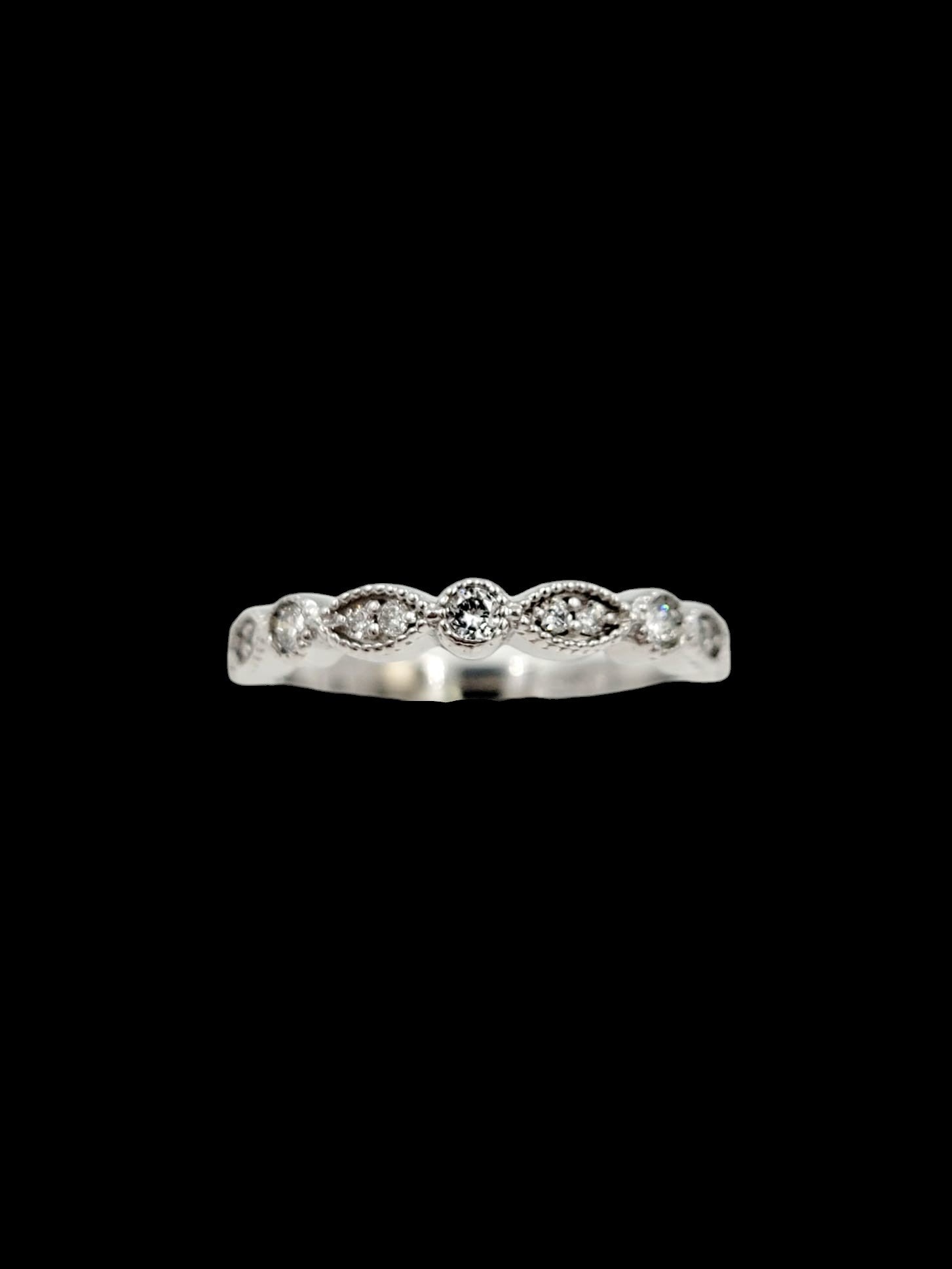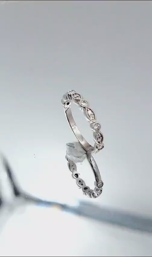 Introducing our enchanting 14k White Gold Diamond Engagement Band, a timeless symbol of everlasting love and exquisite craftsmanship. This captivating ring features 13 round brilliant cut diamonds delicately set within an intricate filigree design, creating a breathtaking half eternity silhouette.