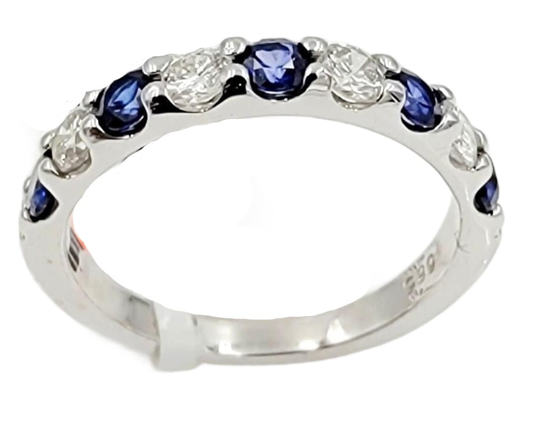 Adding a pop of color and character are five round brilliant-cut sapphires, graced with a deep blue hue that adds a touch of sophistication and uniqueness to the piece.