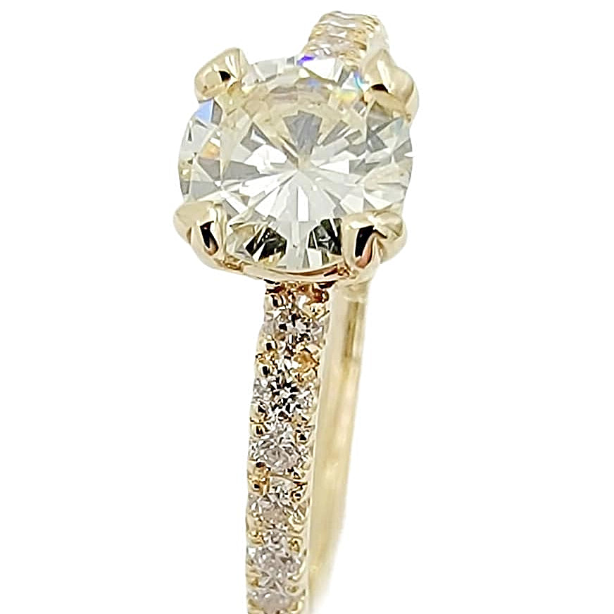 This 14k yellow gold diamond ring is a true classic. Its straight shank design exudes timeless beauty, making it a perfect choice for any occasion.