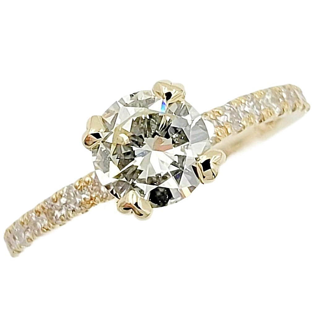 Speaking of the star of the show, the center diamond is a prong-set round brilliant cut gem with a weight of 0.62 carats. It may be a K in color, but it proudly flaunts its VS clarity, showcasing its natural beauty in all its glory.