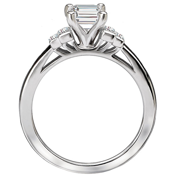 This beautiful 14kt white gold semi-mount engagement ring features sparkling baguette diamonds beside a setting that will accommodate a 7x5mm emerald cut diamond of your choosing. (D 1/3 carat weight)