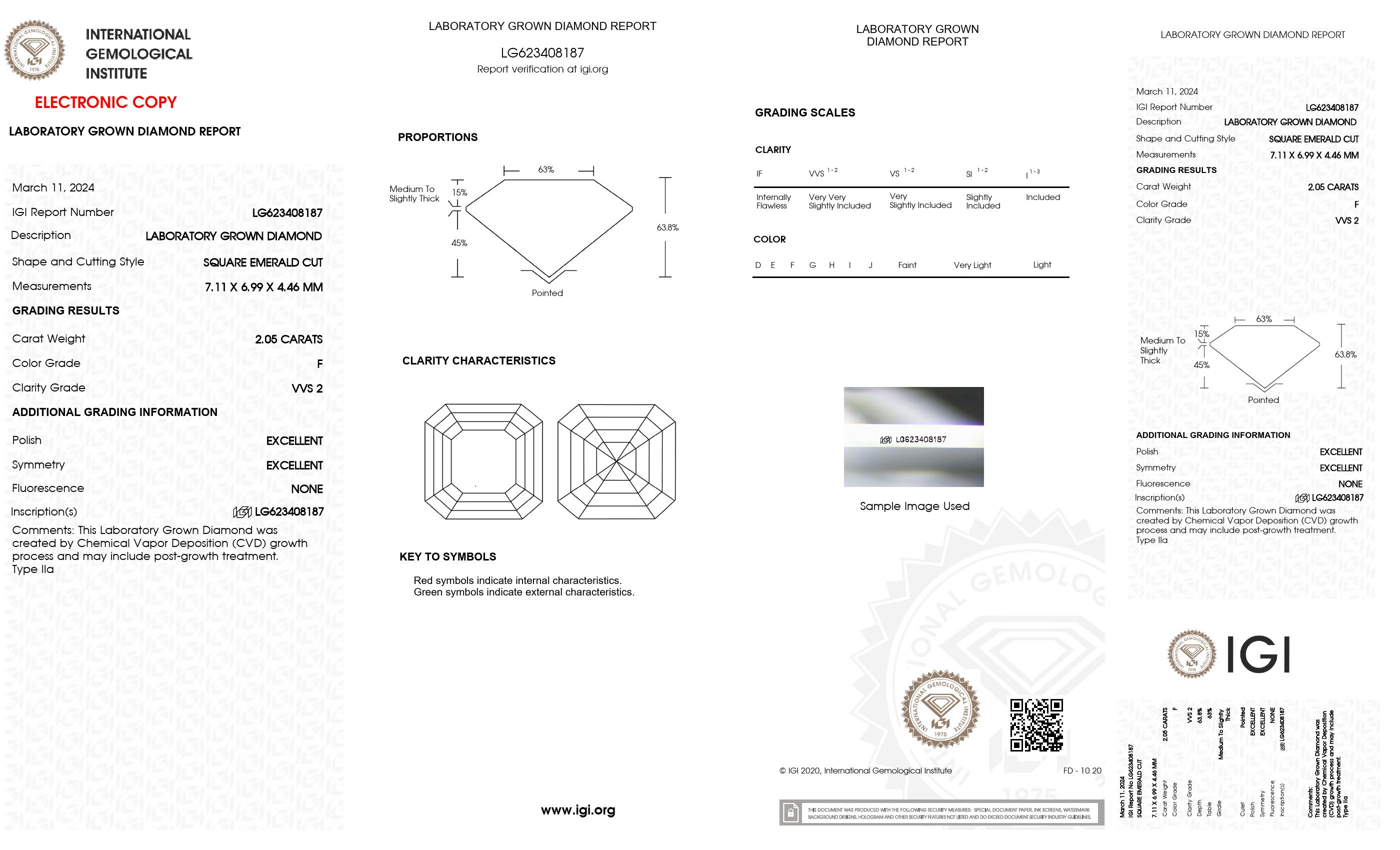 2.05 Ct. Asscher Wholesale IGI Certified Lab Grown Loose Diamond. (Clarity VVS2 / F Color)