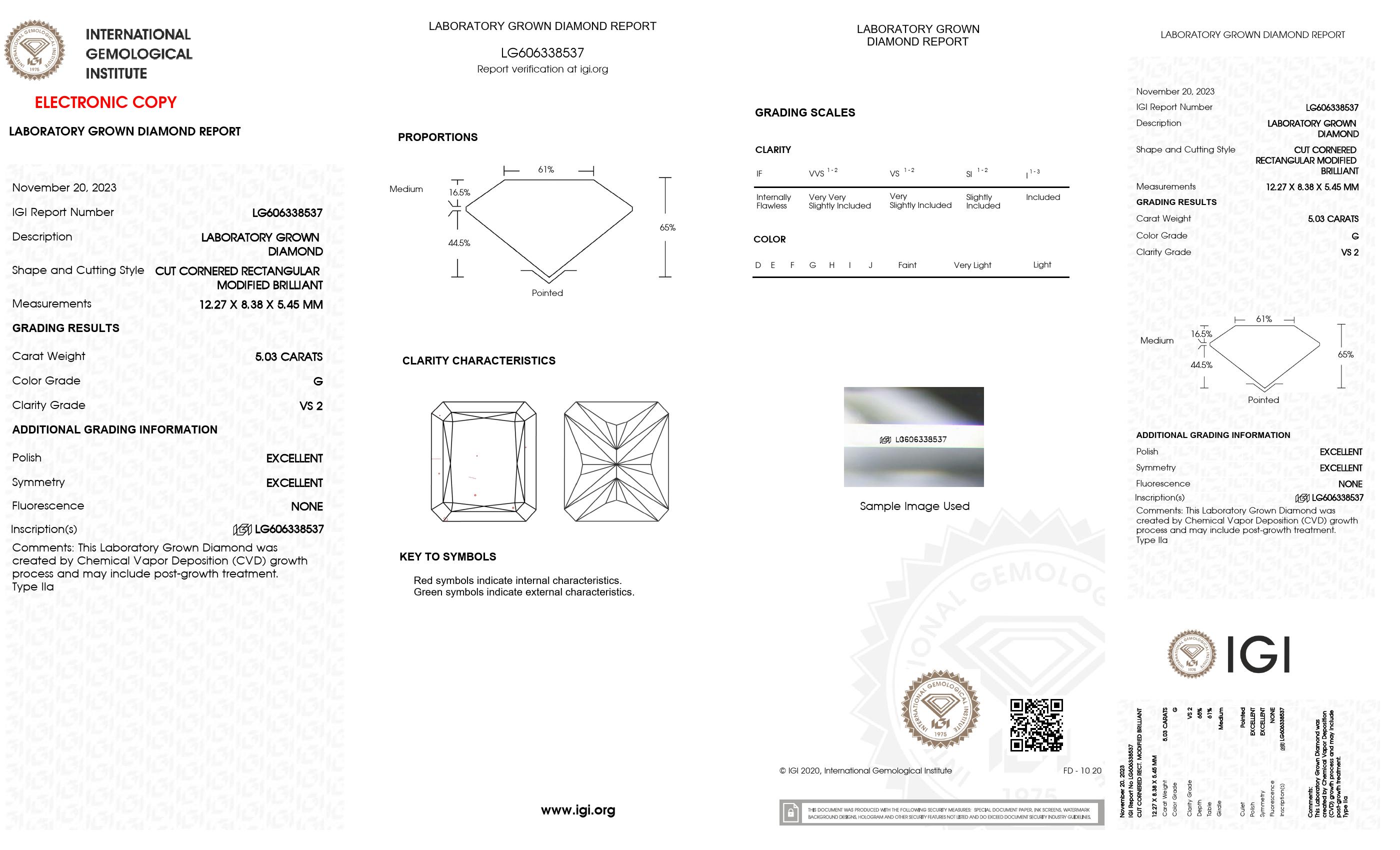 5.03 Ct. Radiant Wholesale IGI Certified Lab Grown Loose Diamond. (Clarity VS2 / G Color)