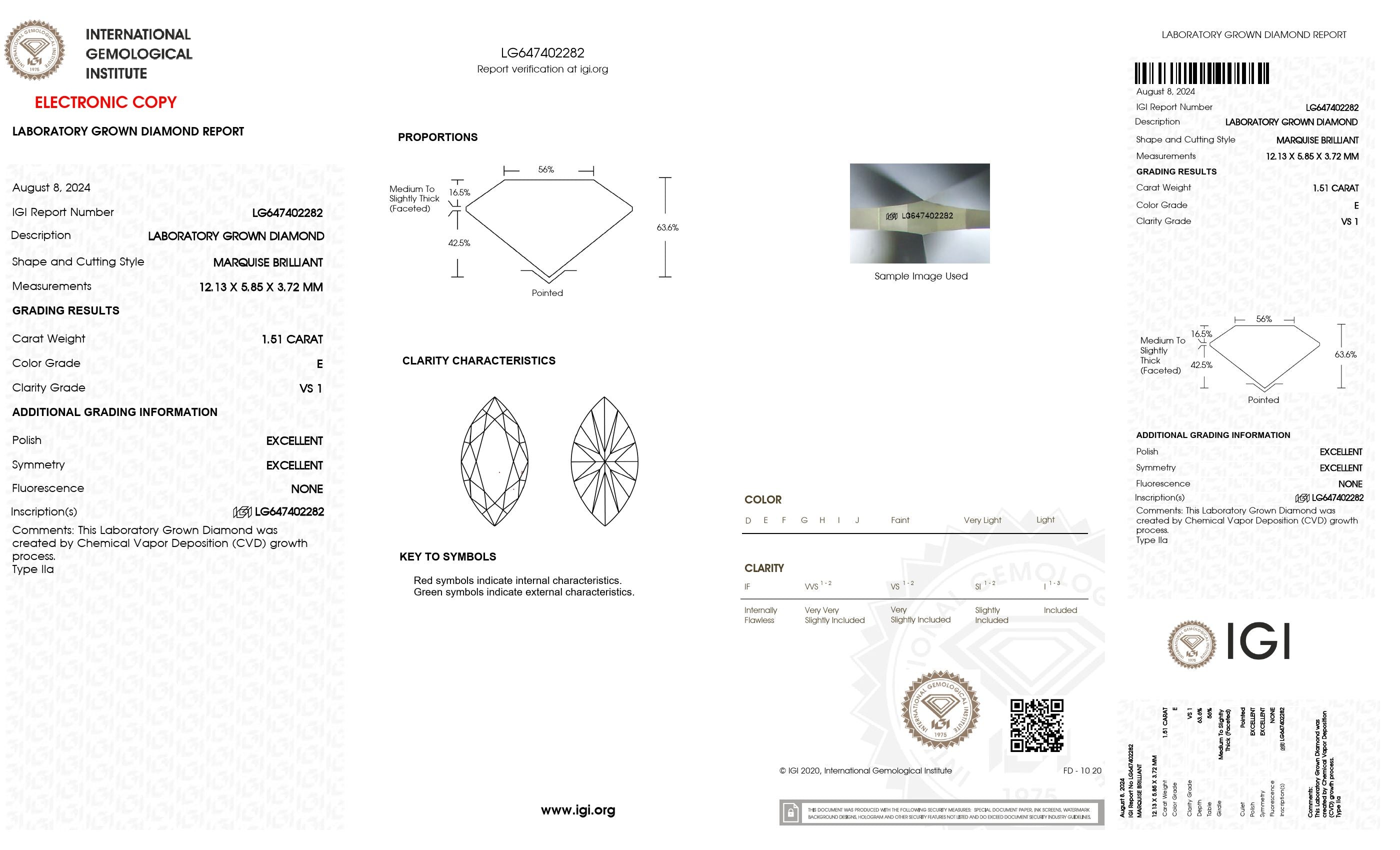1.51 Ct. Marquise Wholesale IGI Certified Lab Grown Loose Diamond. (Clarity VS1 / E Color)