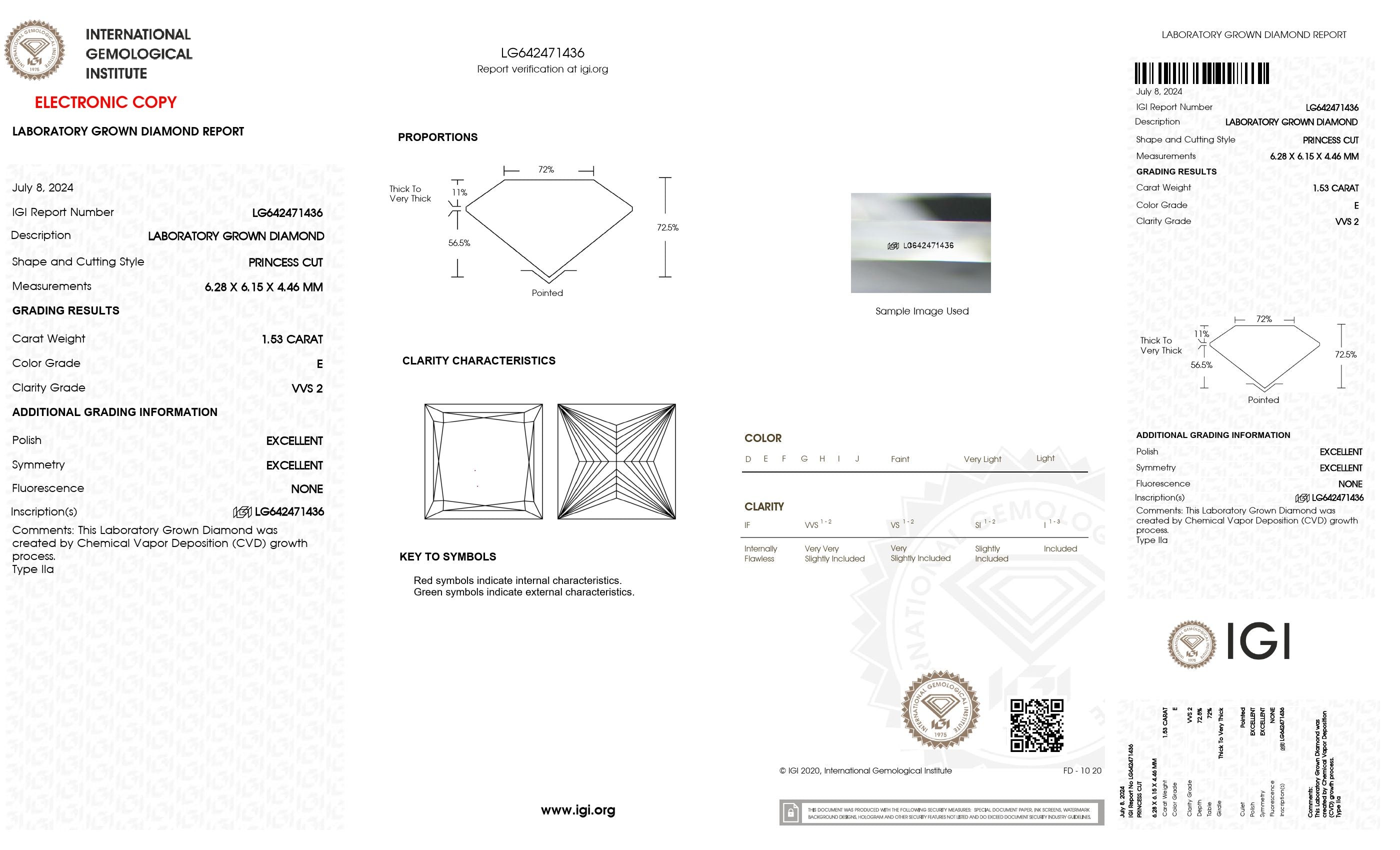 1.53 Ct. Princess Wholesale IGI Certified Lab Grown Loose Diamond. (Clarity VVS2 / E Color)