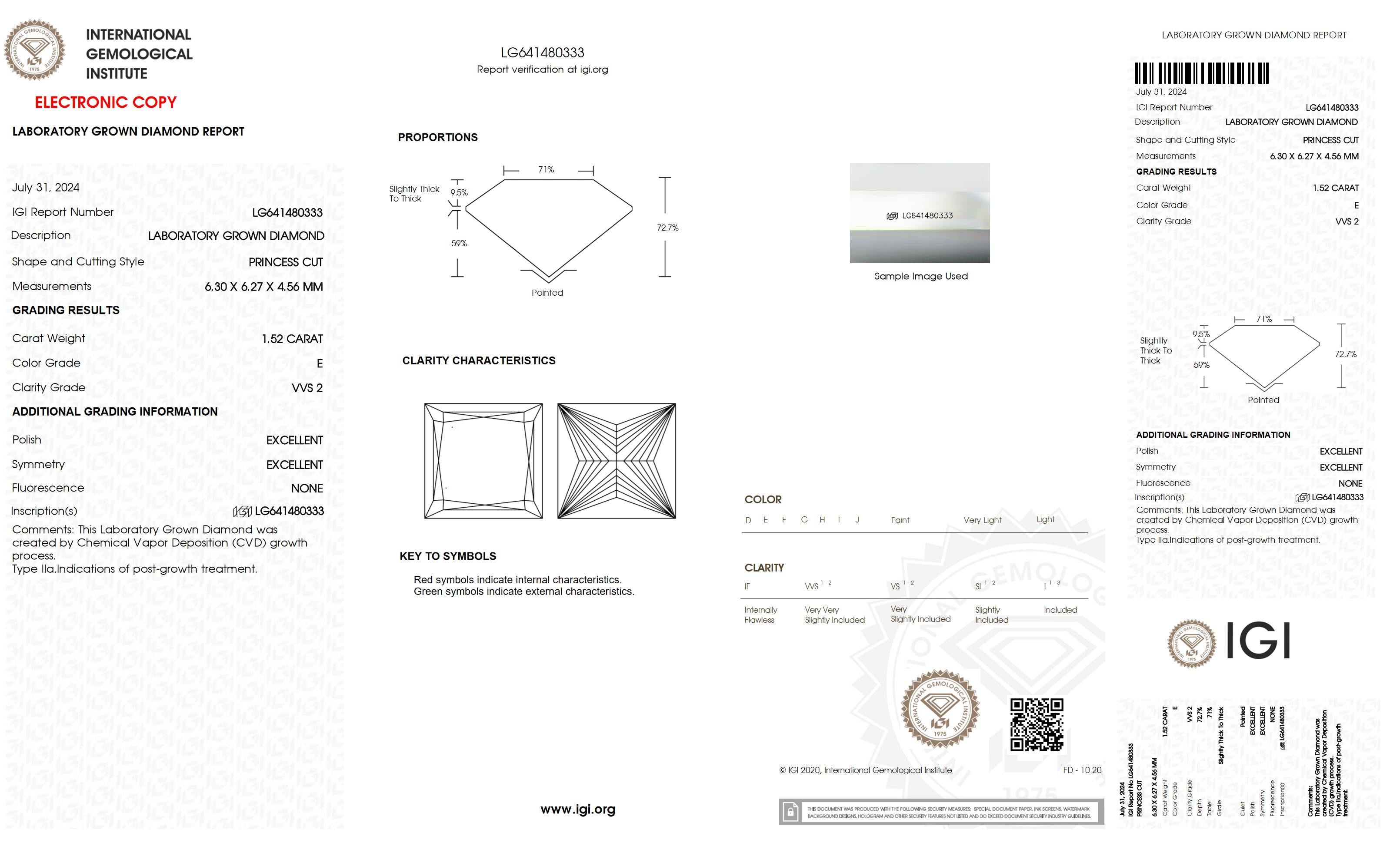 1.52 Ct. Princess Wholesale IGI Certified Lab Grown Loose Diamond. (Clarity VVS2 / E Color)