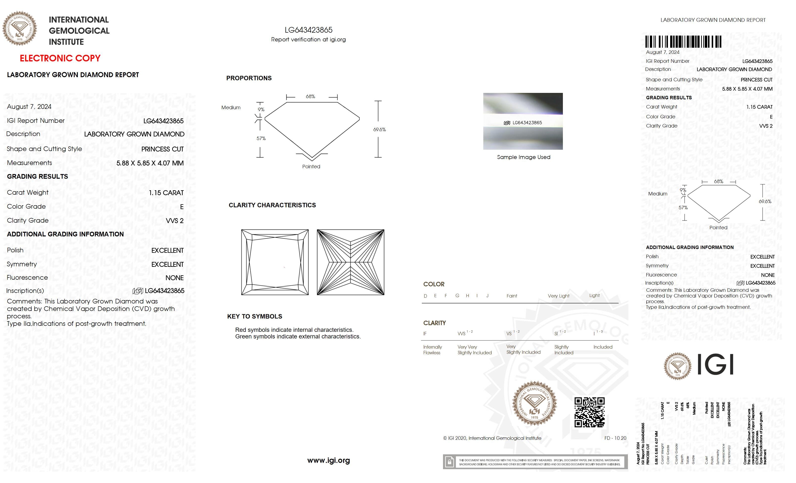 1.15 Ct. Princess Wholesale IGI Certified Lab Grown Loose Diamond. (Clarity VVS2 / E Color)