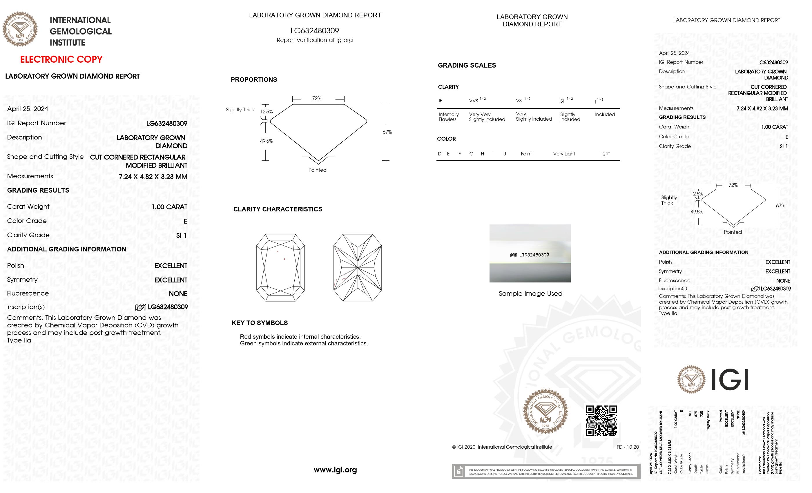 1 Ct. Radiant Wholesale IGI Certified Lab Grown Loose Diamond. (Clarity SI1 / E Color)
