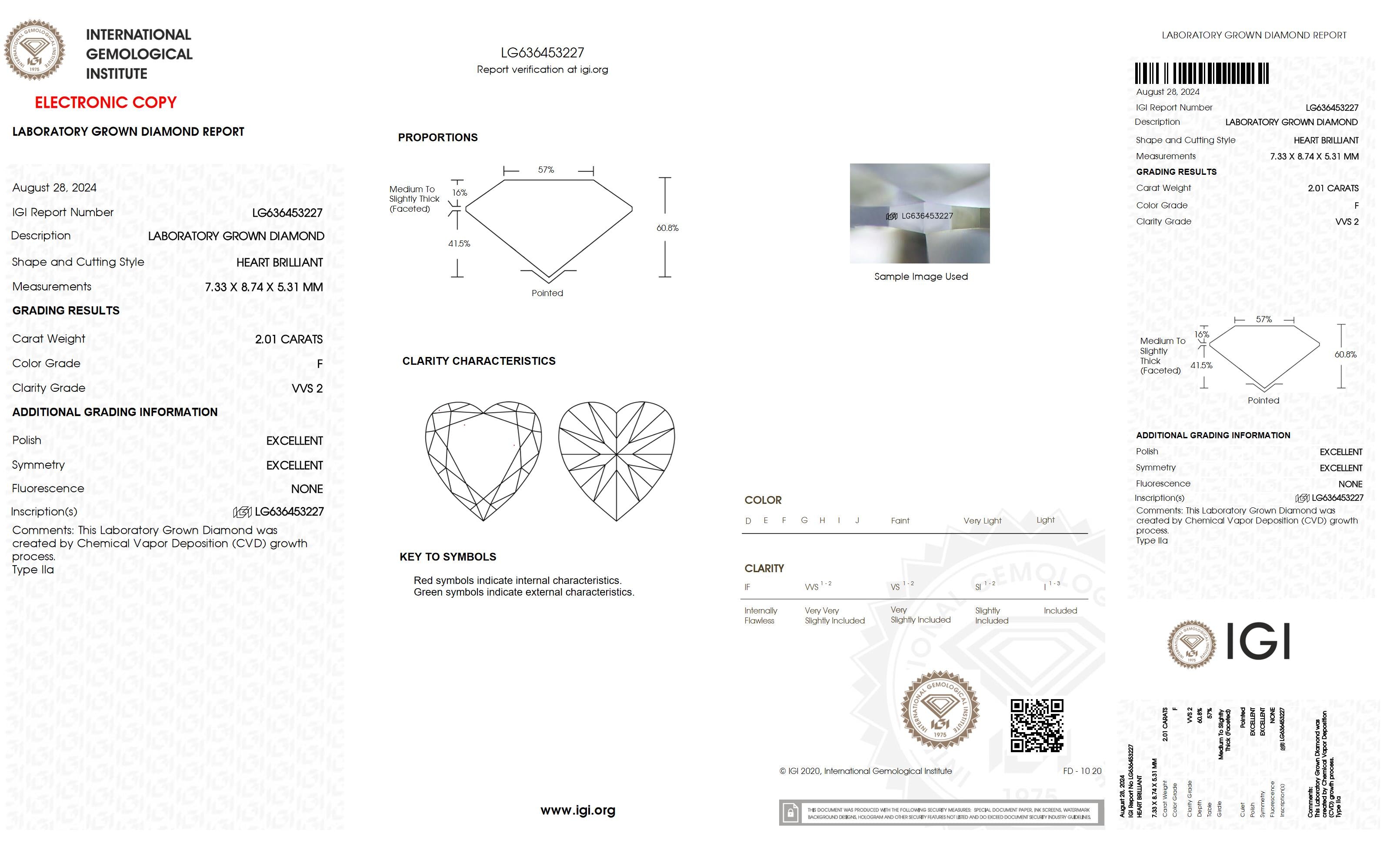 2.01 Ct. Heart Wholesale IGI Certified Lab Grown Loose Diamond. (Clarity VVS2 / F Color)