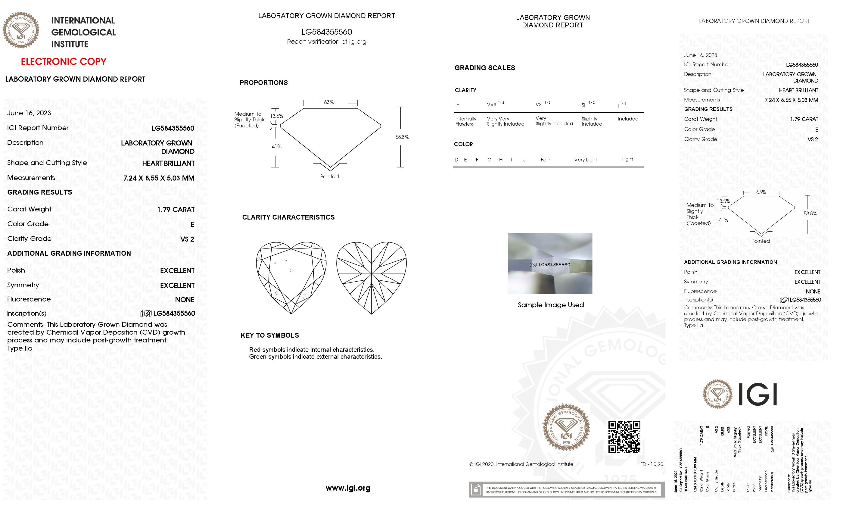 1.79 Ct. Heart Wholesale IGI Certified Lab Grown Loose Diamond. (Clarity VS2 / E Color)