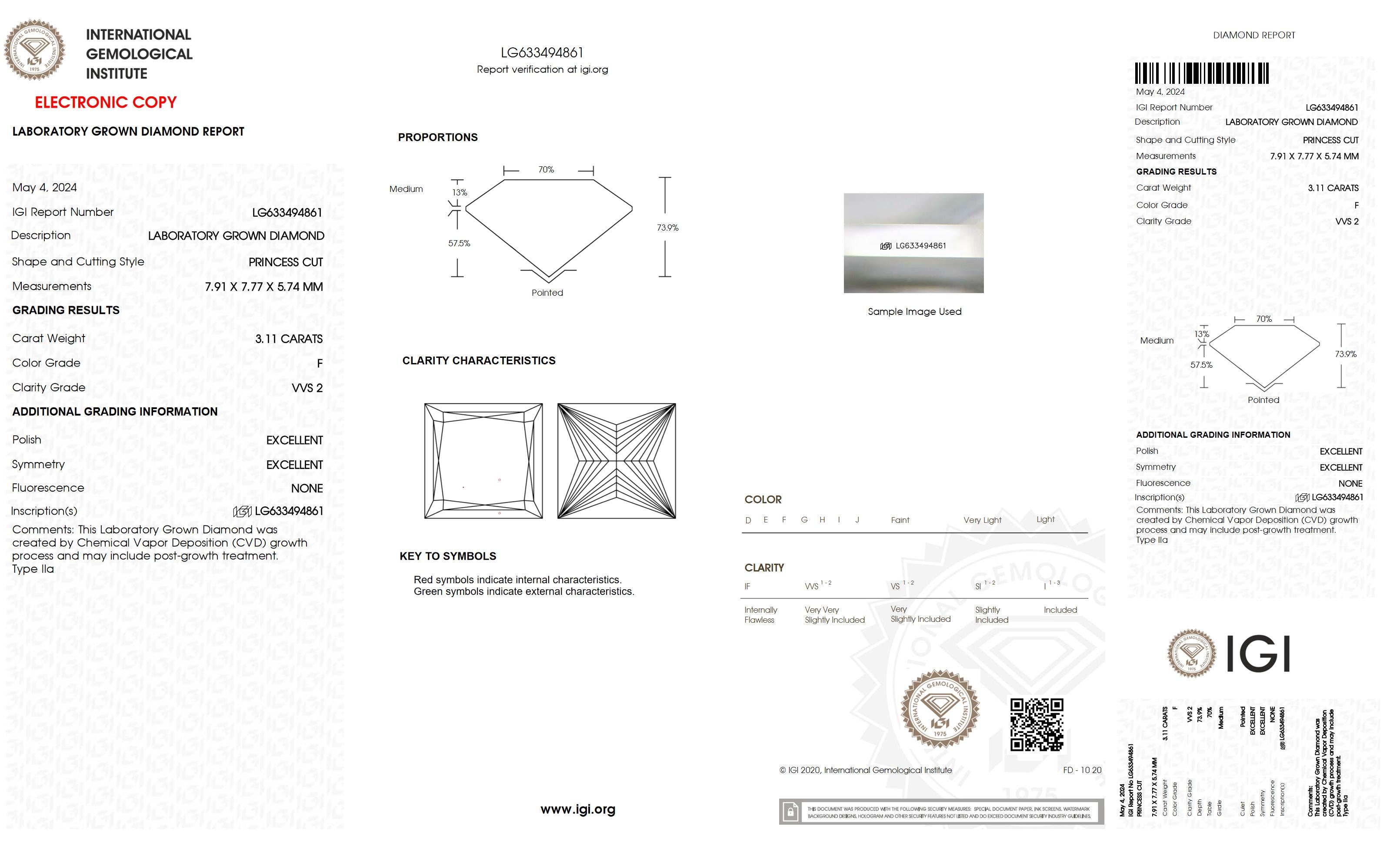 3.11 Ct. Princess Wholesale IGI Certified Lab Grown Loose Diamond. (Clarity VVS2 / F Color)
