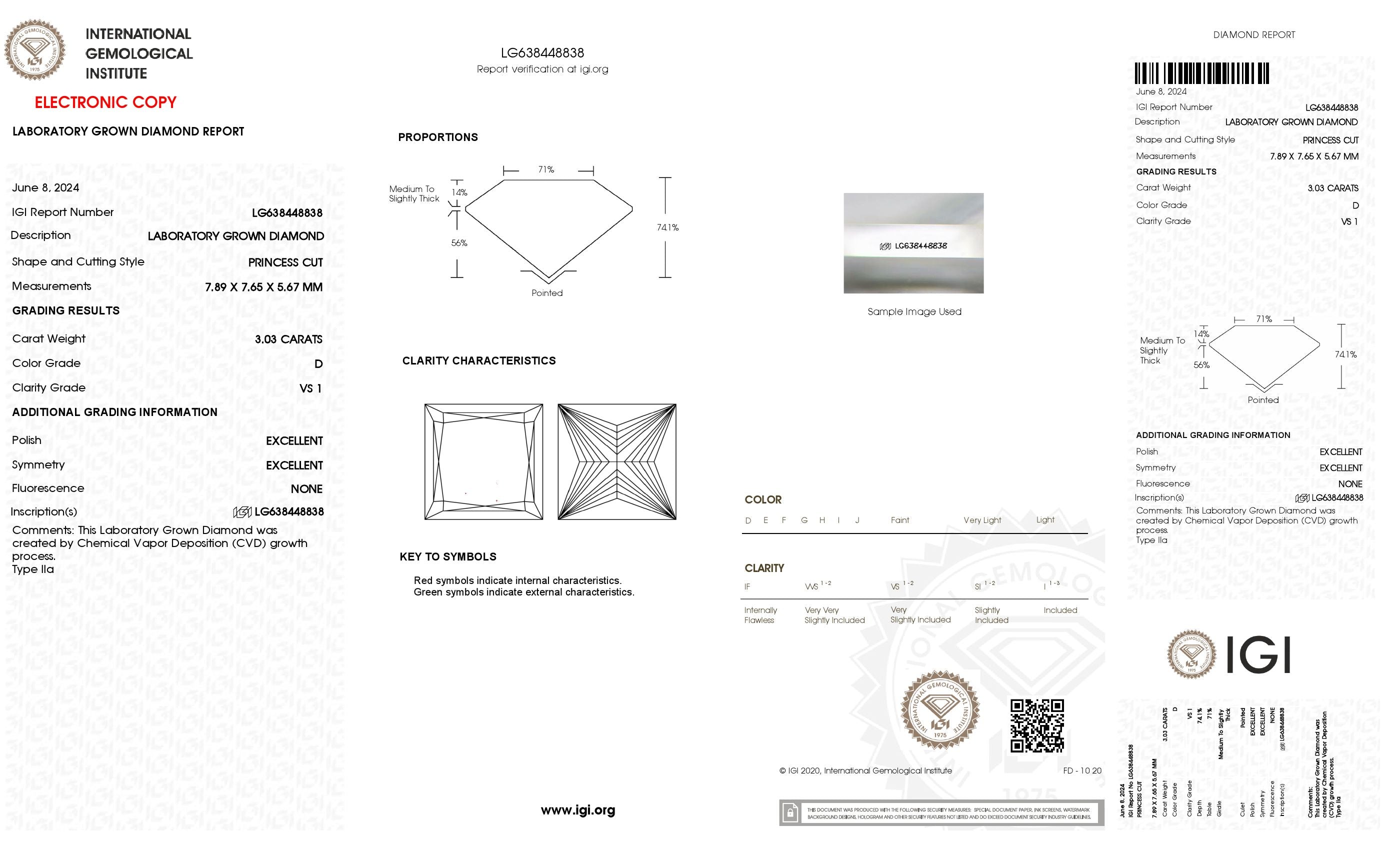 3.03 Ct. Princess Wholesale IGI Certified Lab Grown Loose Diamond. (Clarity VS1 / D Color)