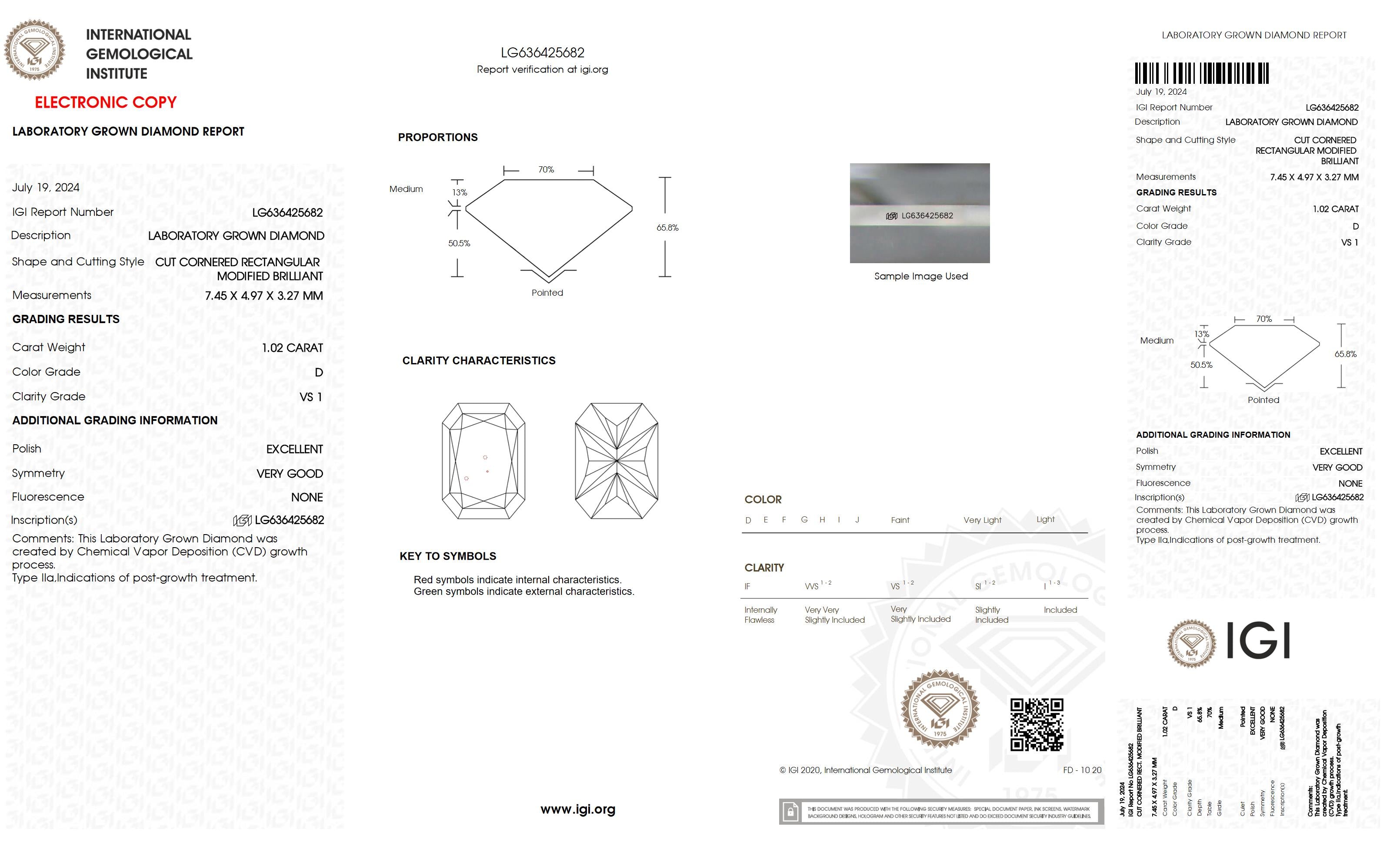 1.02 Ct. Radiant Wholesale IGI Certified Lab Grown Loose Diamond. (Clarity VS1 / D Color)