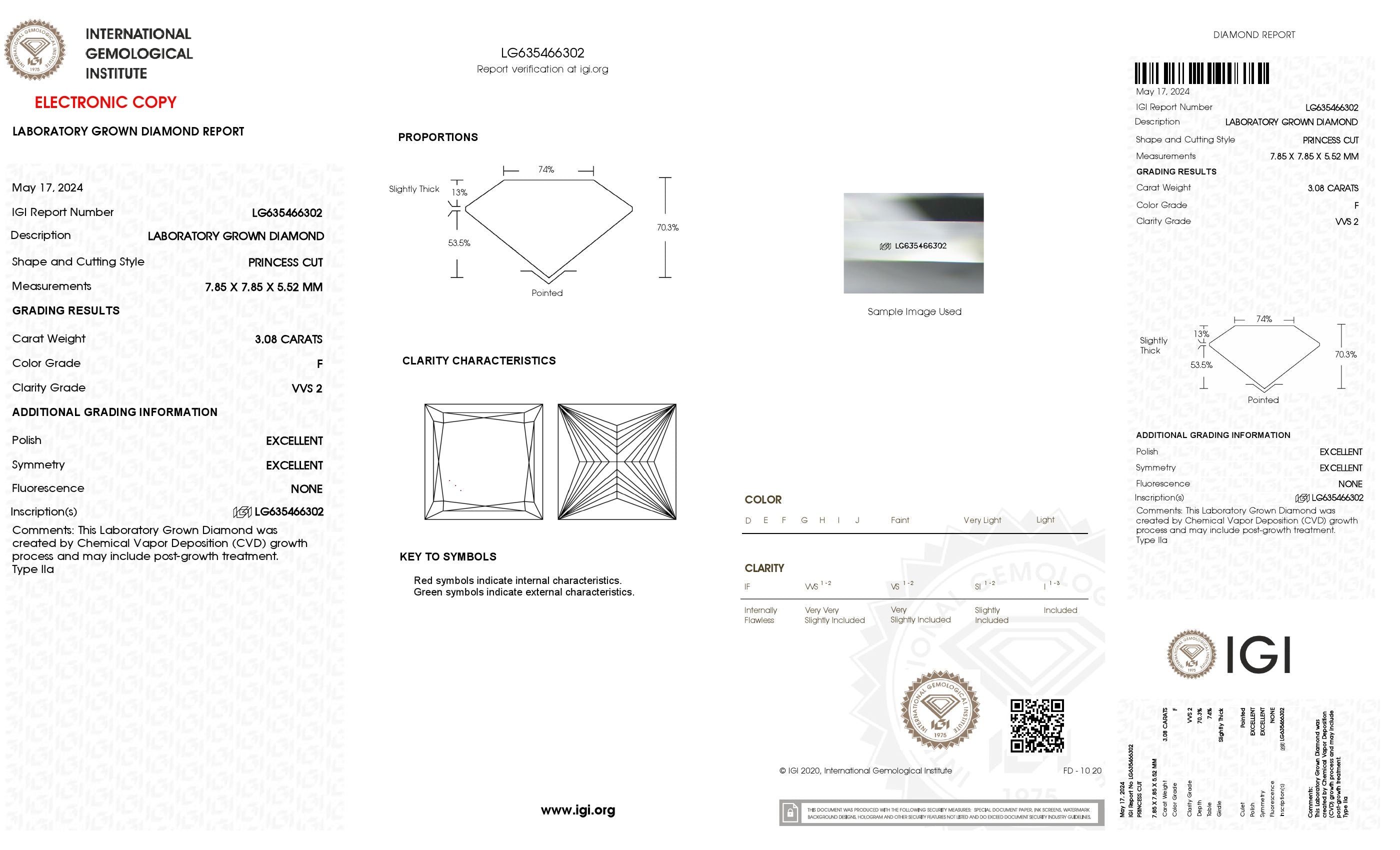 3.08 Ct. Princess Wholesale IGI Certified Lab Grown Loose Diamond. (Clarity VVS2 / F Color)