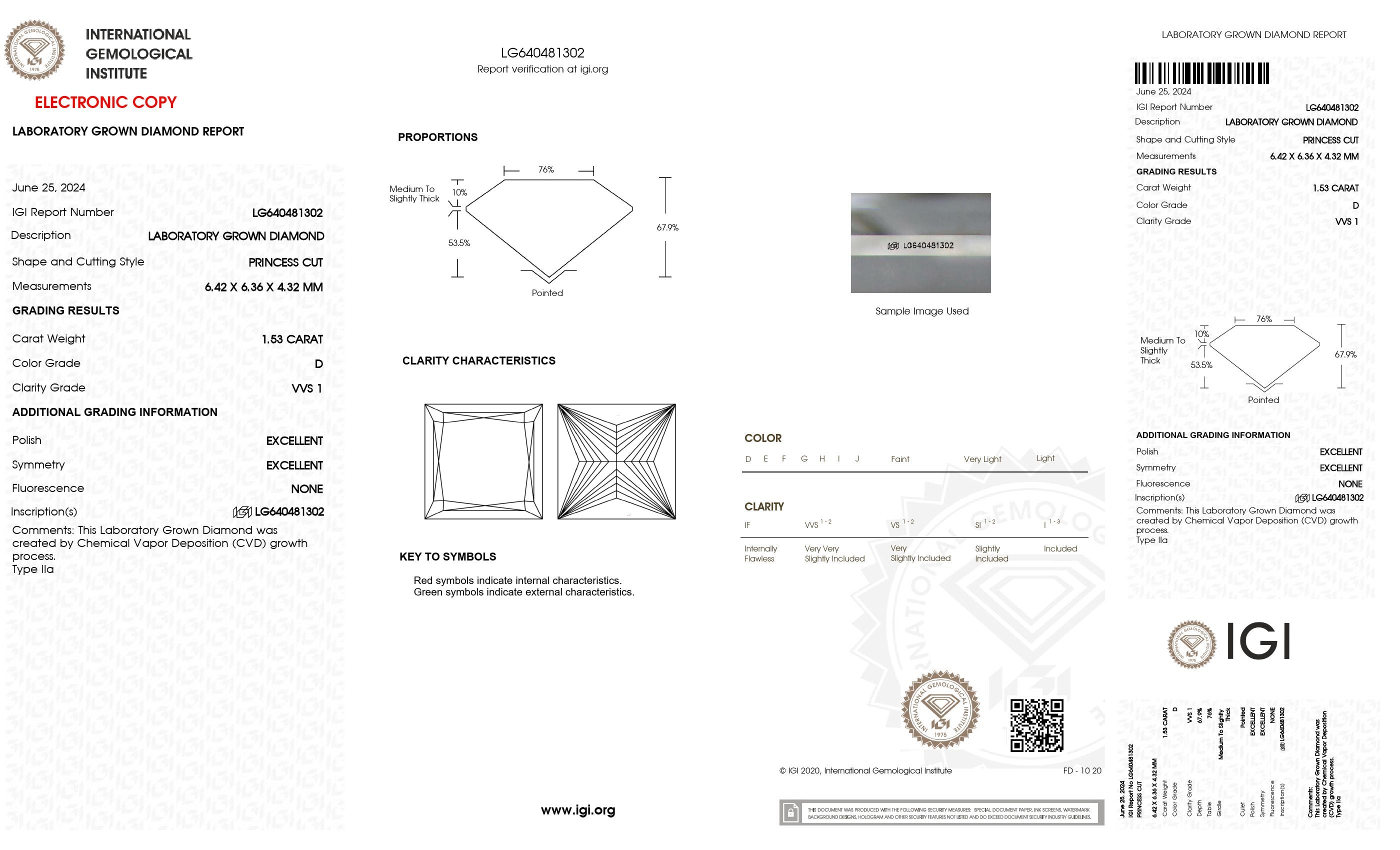 1.53 Ct. Princess Wholesale IGI Certified Lab Grown Loose Diamond. (Clarity VVS1 / D Color)