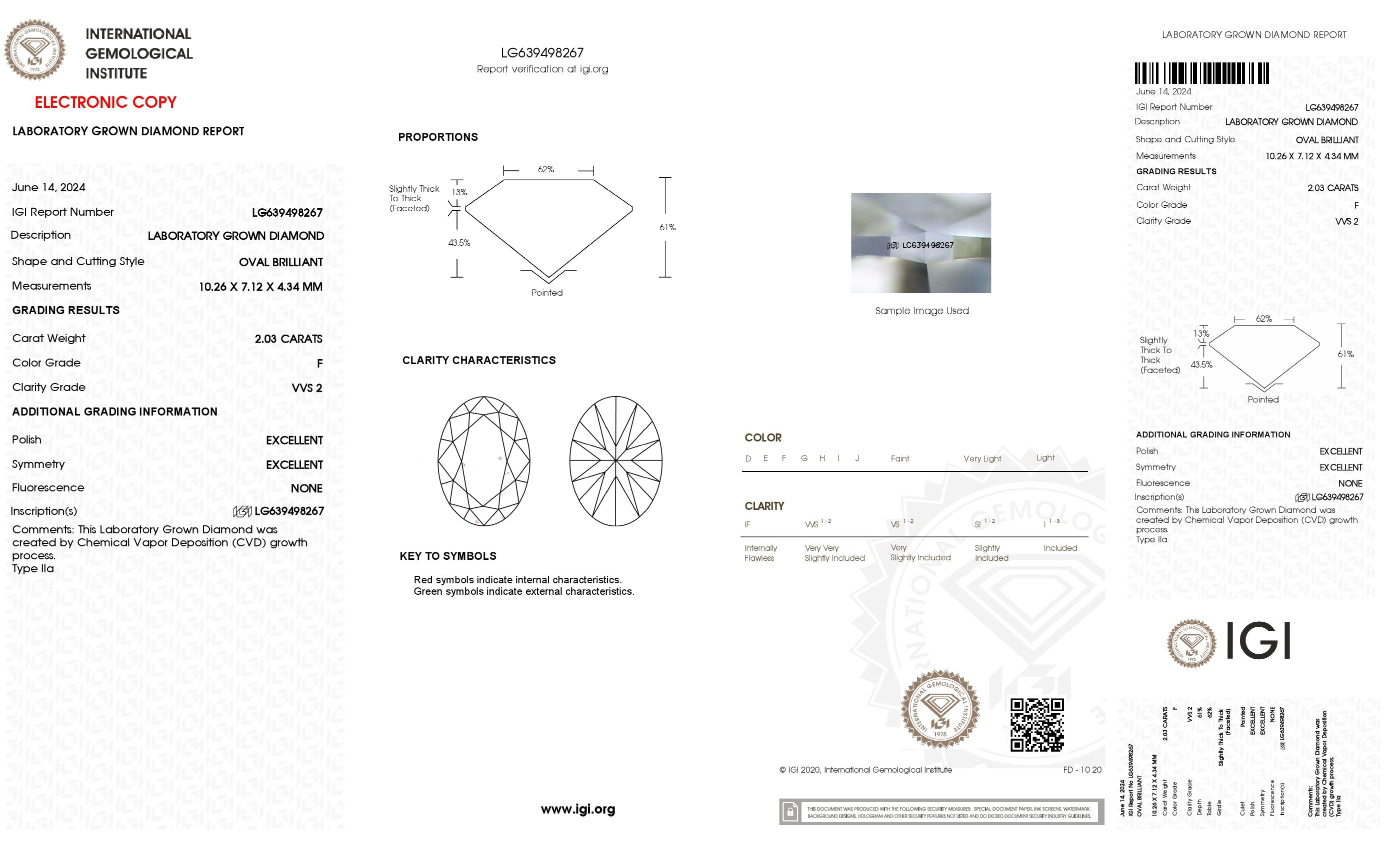 2.03 Ct. Oval Wholesale IGI Certified Lab Grown Loose Diamond. (Clarity VVS2 / F Color)