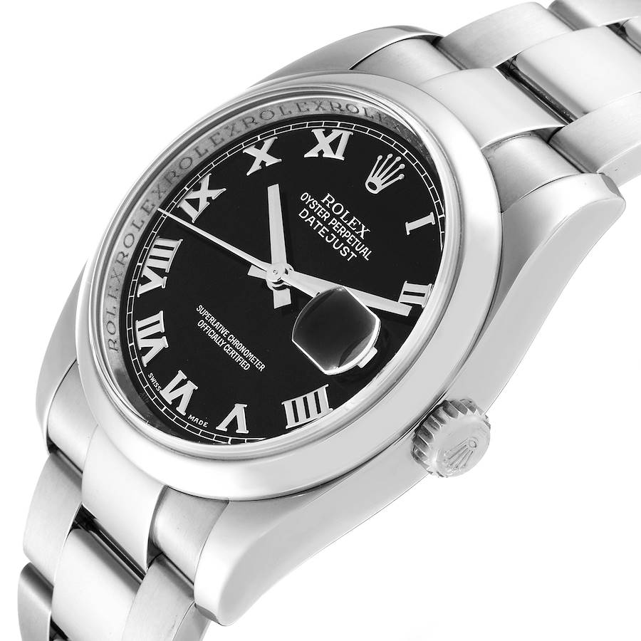 Men's Rolex 36mm Oyster Perpetual DateJust Stainless Steel Watch with Roman Numeral Black Dial and Smooth Bezel. (Pre-Owned 116200)