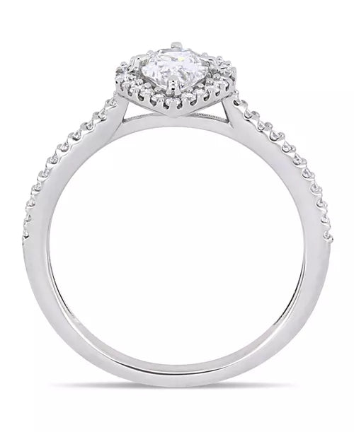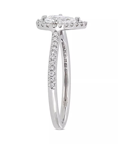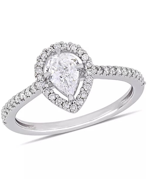Woman's Pear-Cut Floating 14K White Gold Halo 0.37 CT (SI Color H) Center Diamond Engagement Ring. (Size: 6.50)