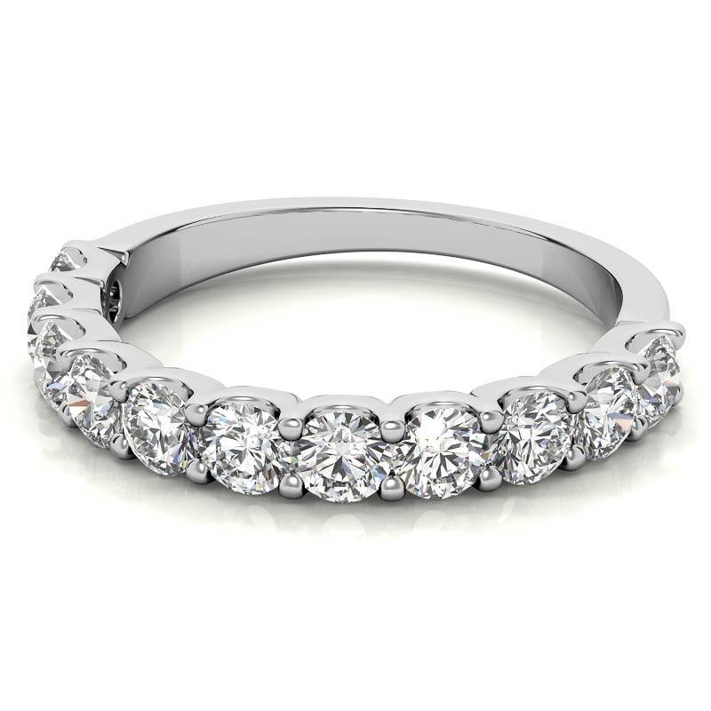 Woman's 14K White Gold 10 Stone 0.80 CT (SI Color H/I) 2.6 GR Diamond Anniversary Band. (Size: 6.5) Ring Size: 6.5.Weight: 2.6 Grams.Stone Shape: Round.Total Weight: 0.80 Carats.Stone Count: 10 Diamonds.Setting Type: Shared Prong.