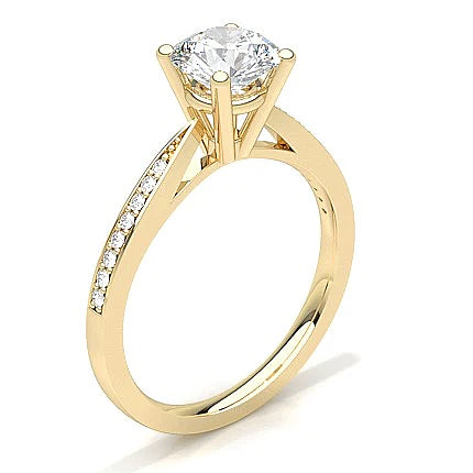 Woman's 14K Yellow Gold 0.62 CT (SI Color I) Center Diamond Engagement Ring. (Size: 6.75)