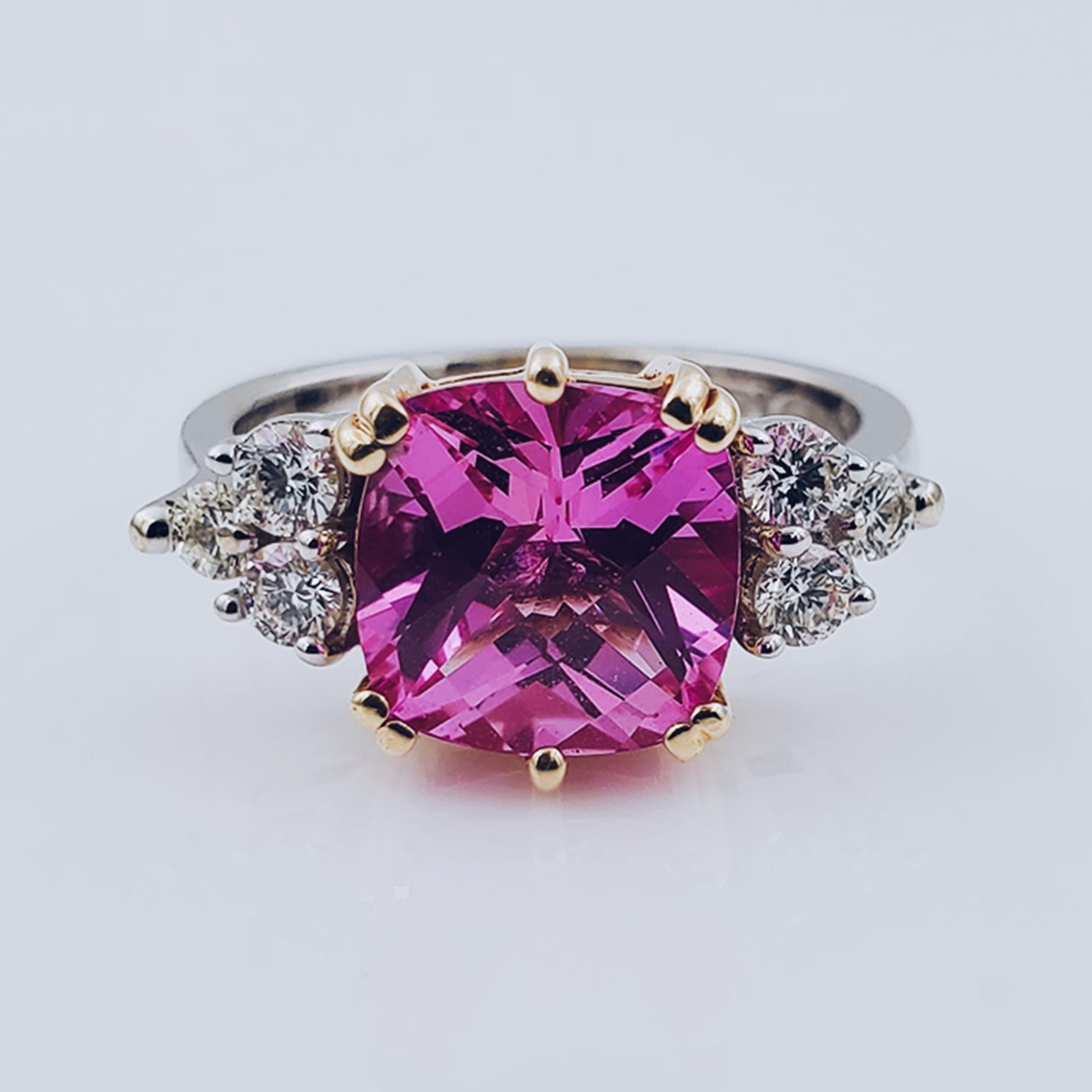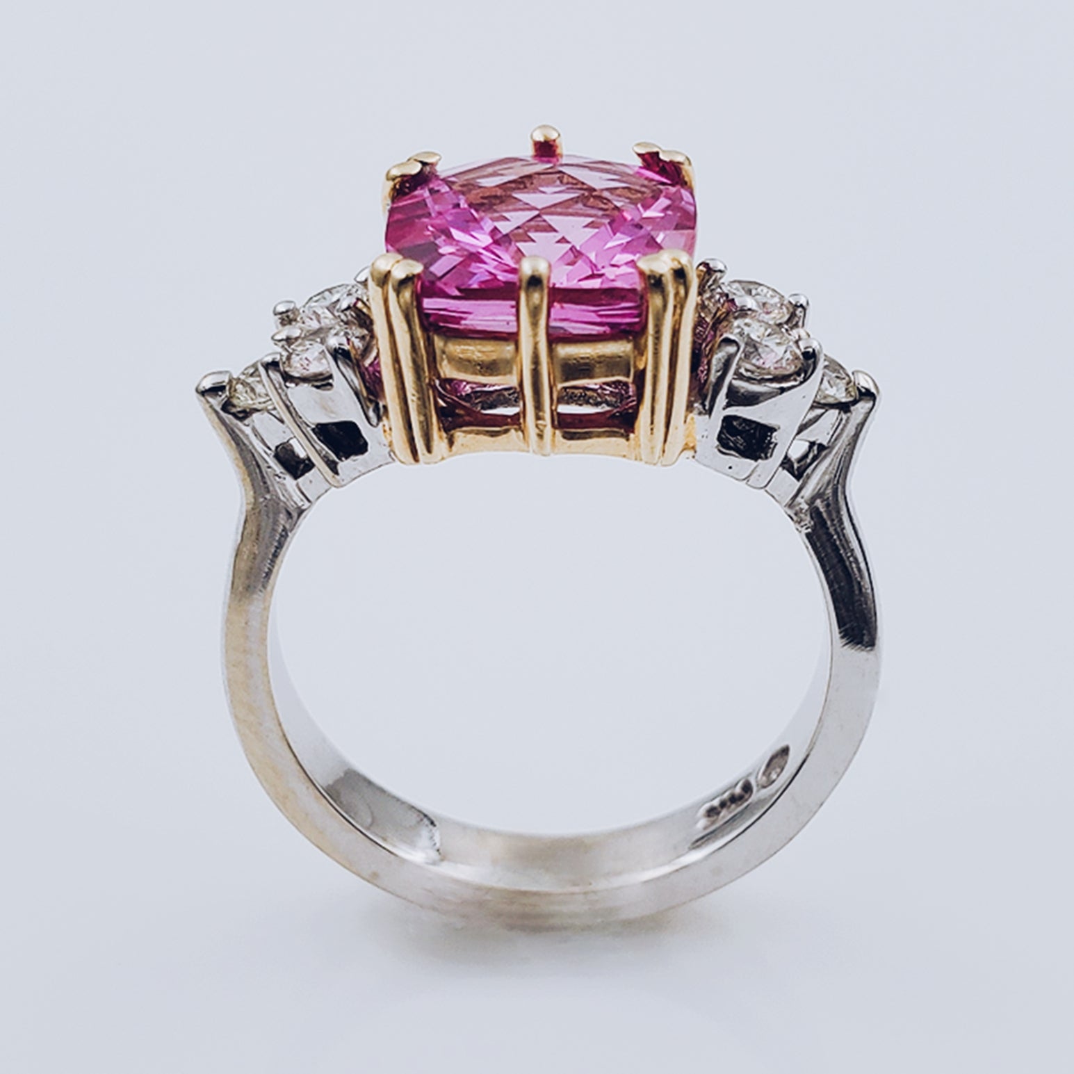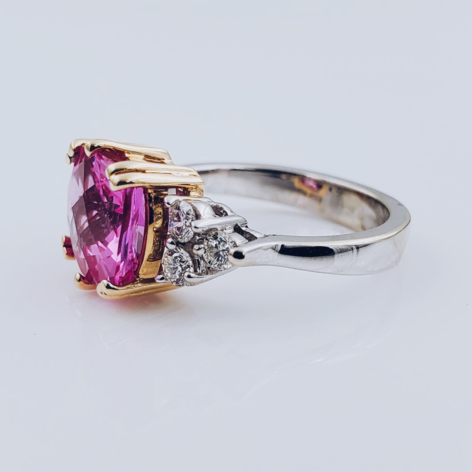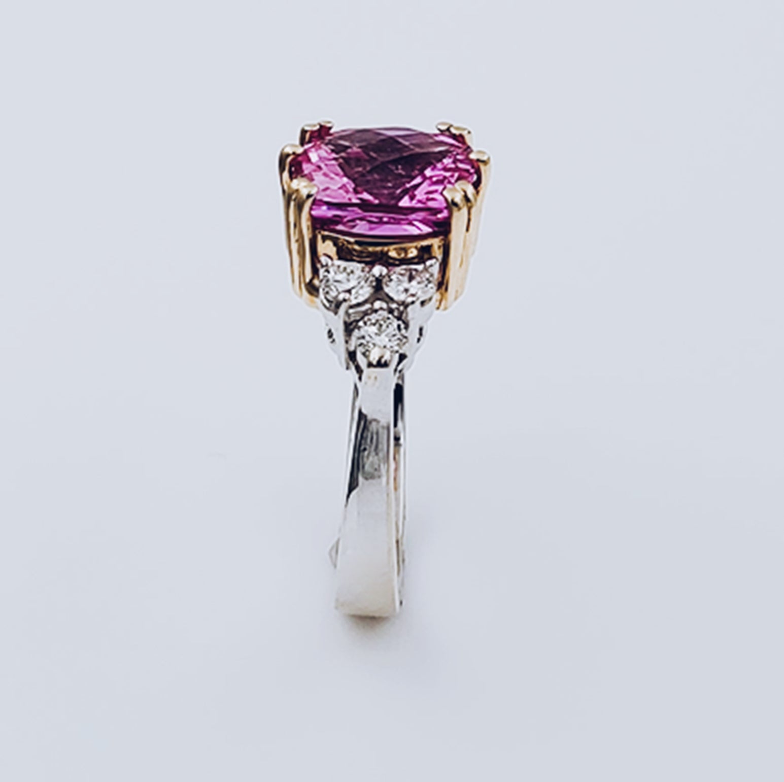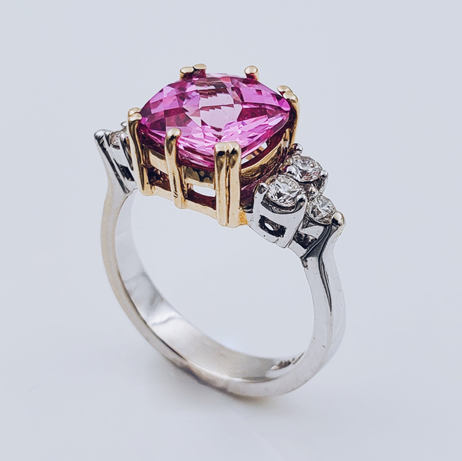 Women's 14K White Gold 6 Diamonds (0.48 CT) with Pink Sapphire Center Stone 6.00 CT (SI 3 Color F) 6.2 GR Anniversary Band.
