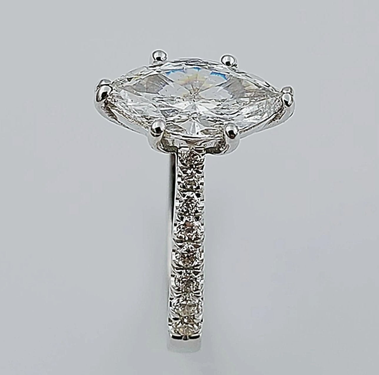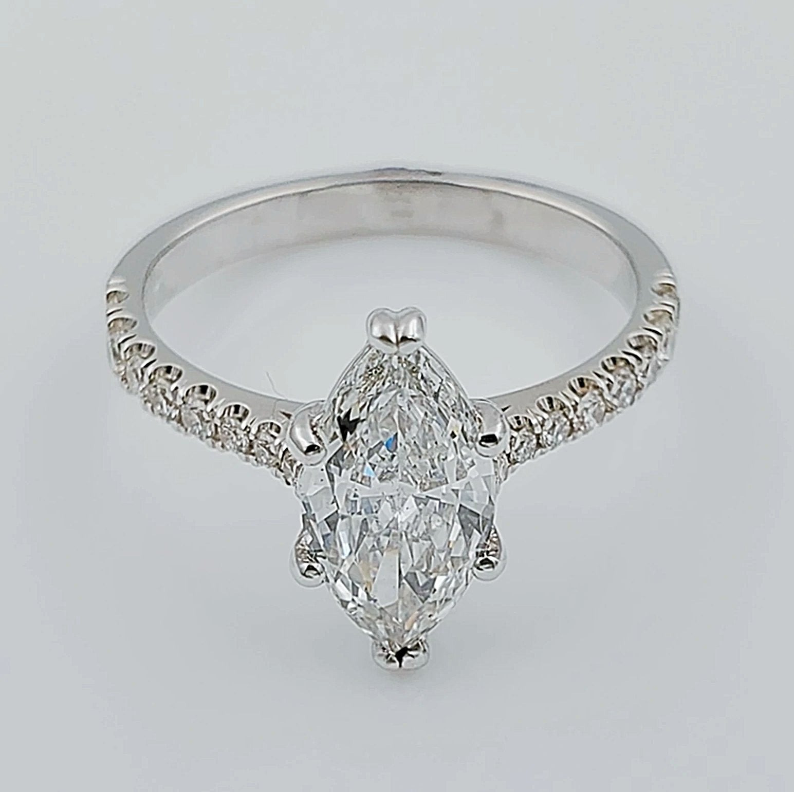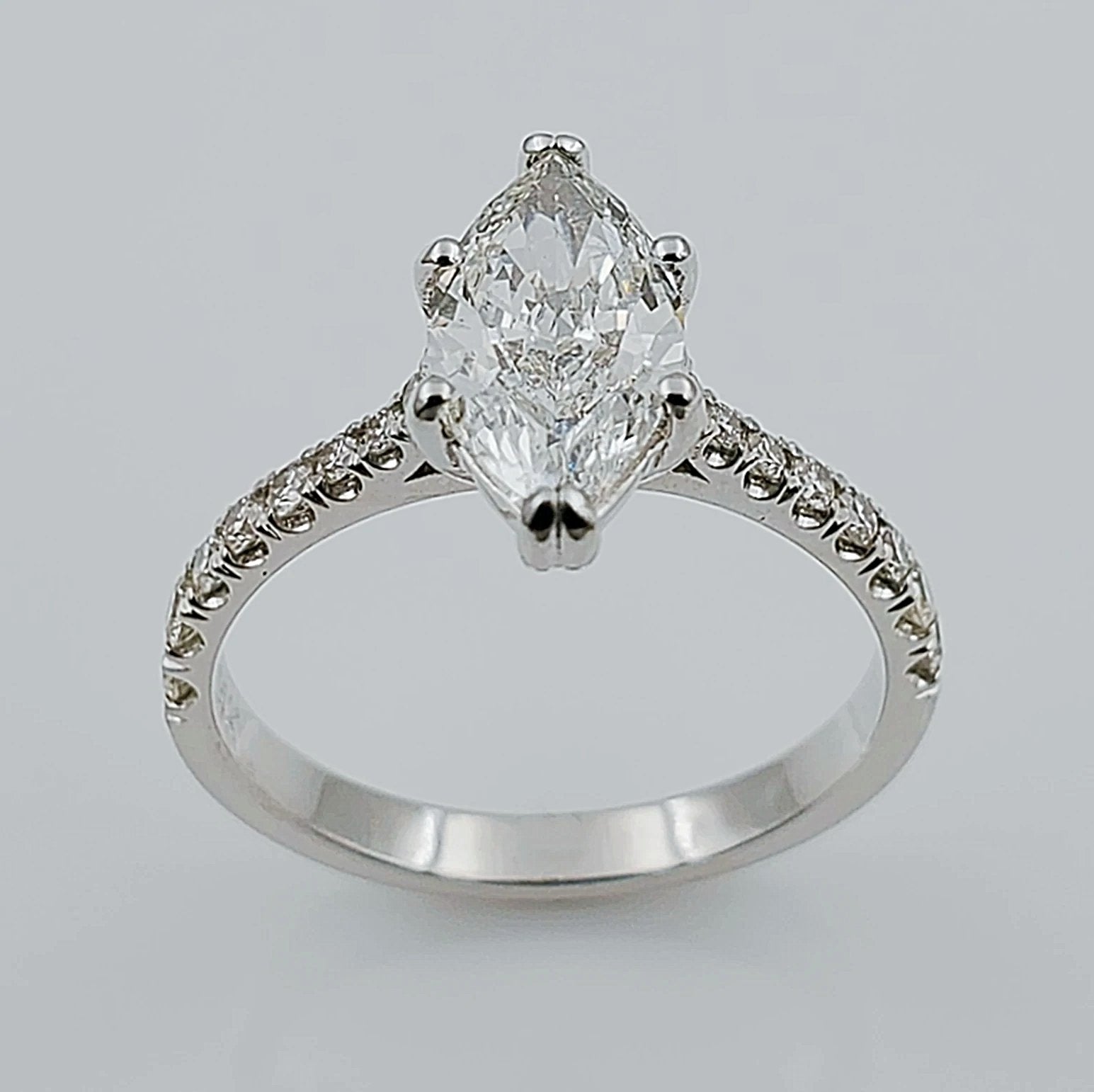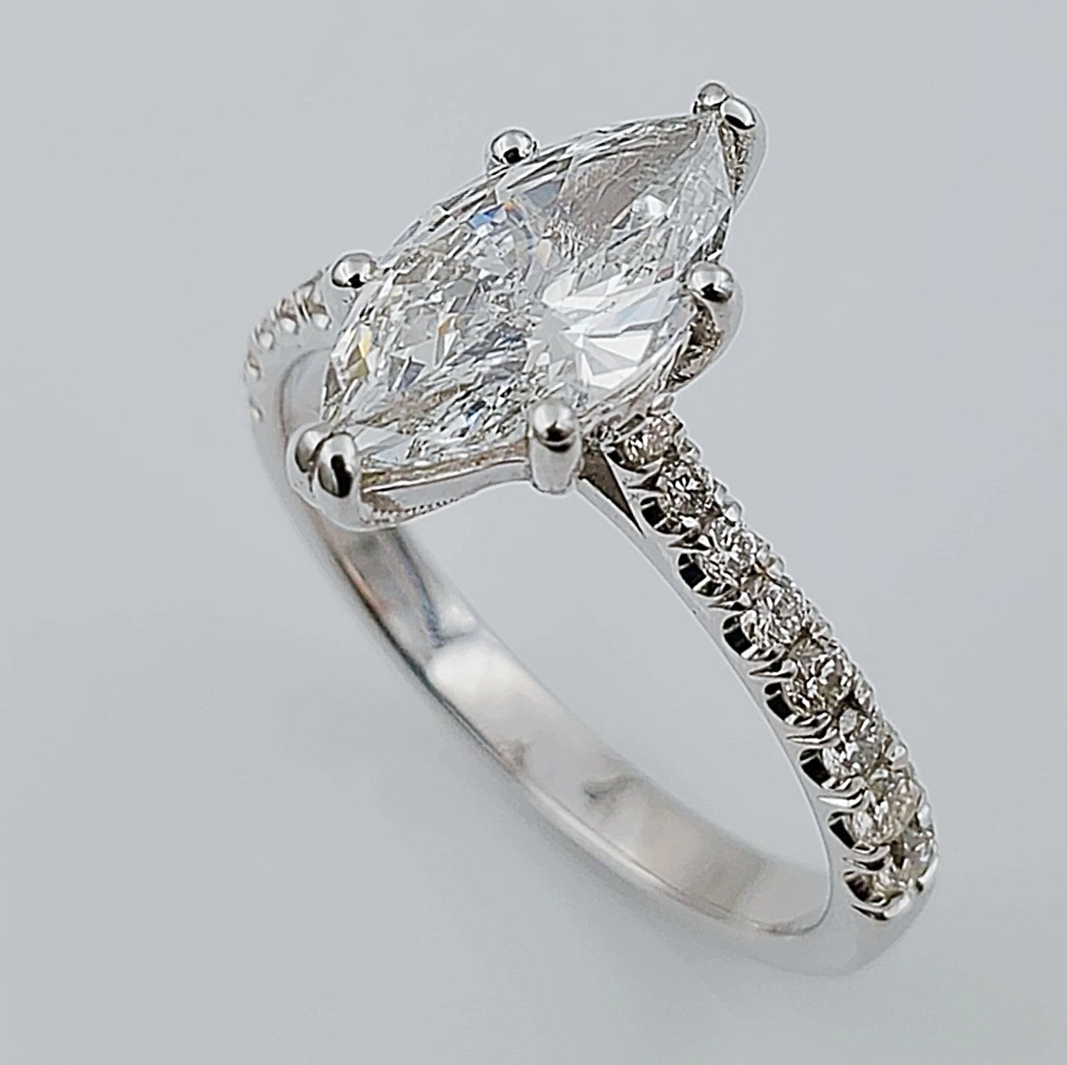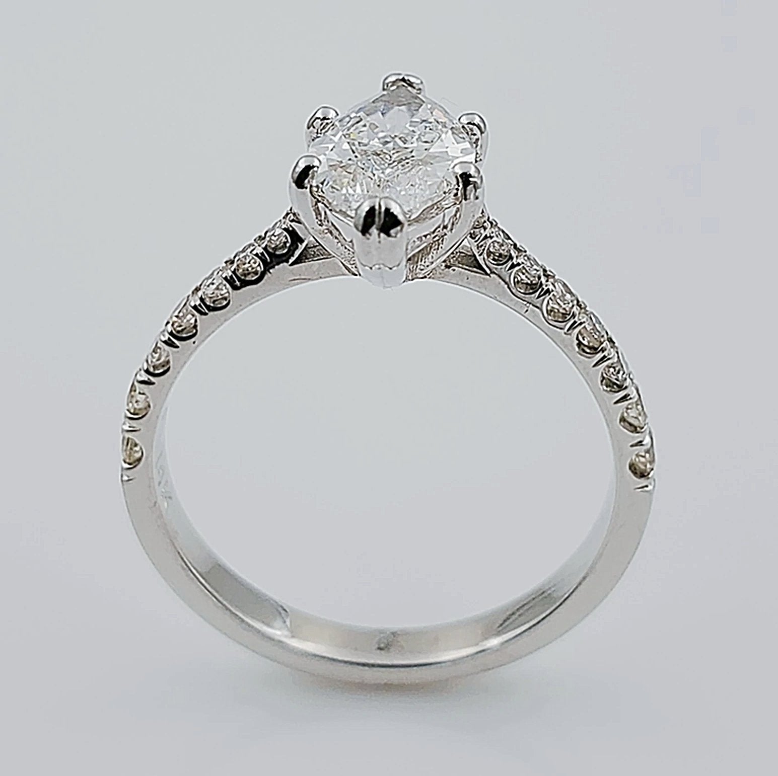 Women's 14K White Gold with 1.12 CT Marquis Center Diamond (I1 Color I) 2.9 GR Total Weight Wedding Ring. (Size: 6.25)