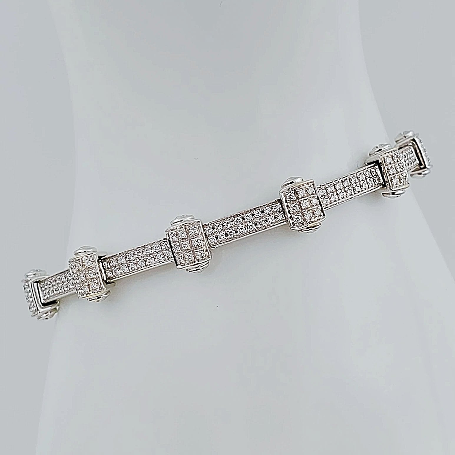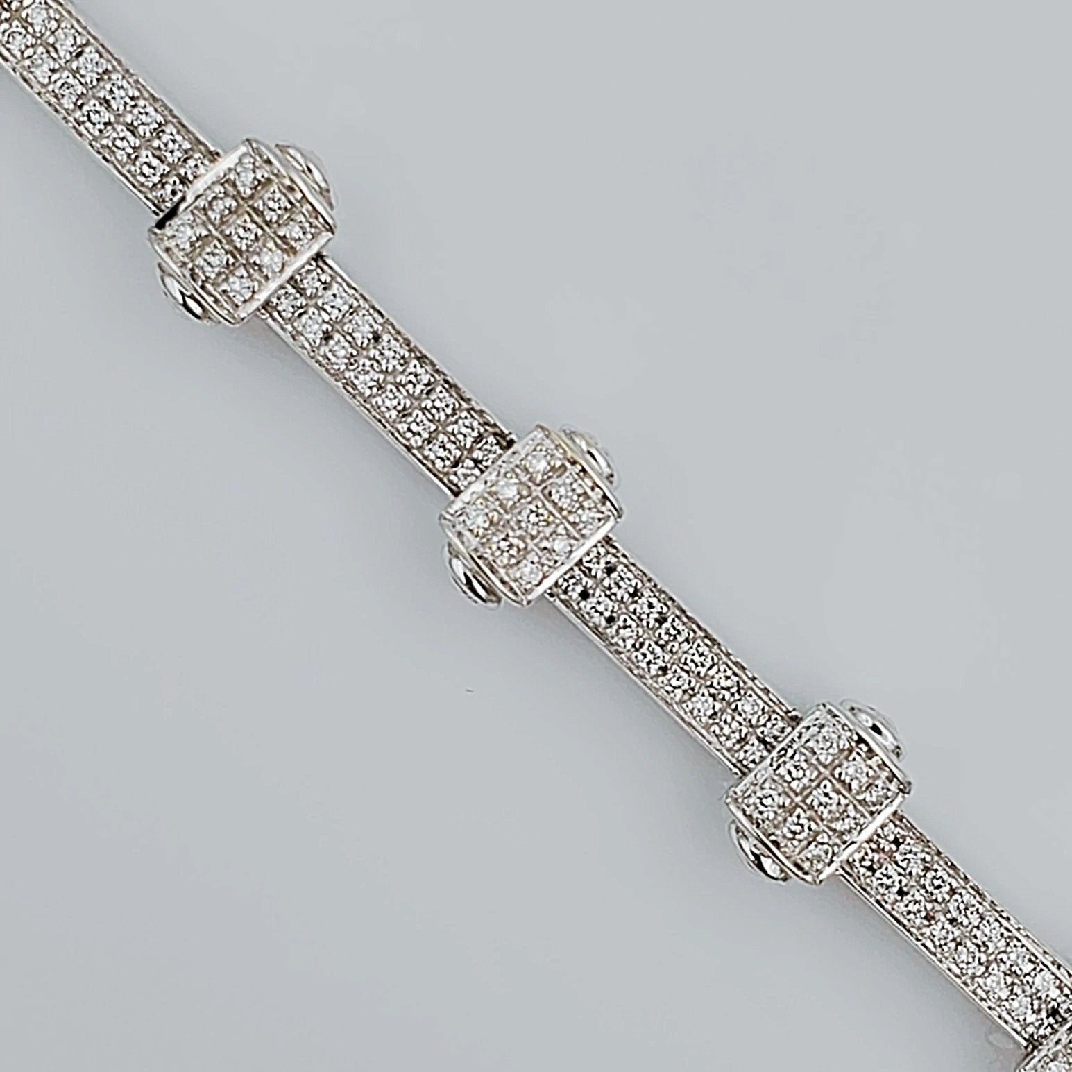 Women's 18K White Gold 2.59 Carat Total Weight (VS Color H) 25.1 GR Diamond Tennis Bracelet.